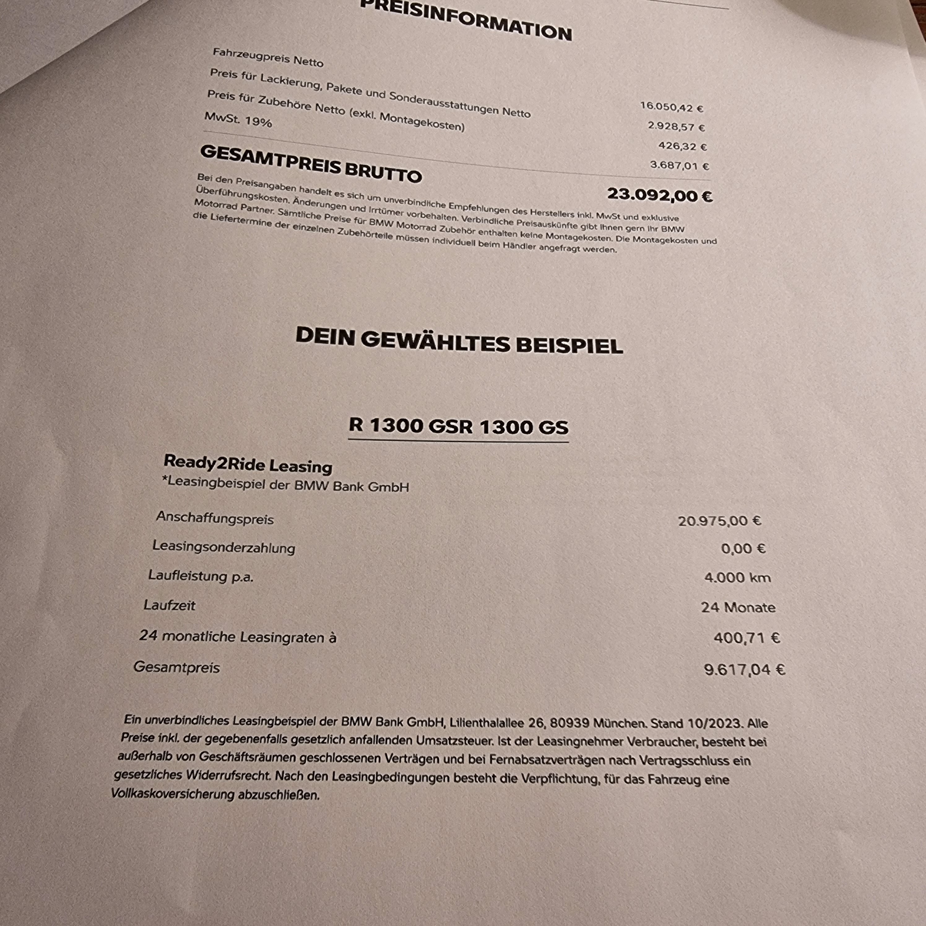€9600,- für 8000km?Jupp, Leasingangebot für zwei Jahre mit 4000 km p.a. = 400 Euro pro Monat.