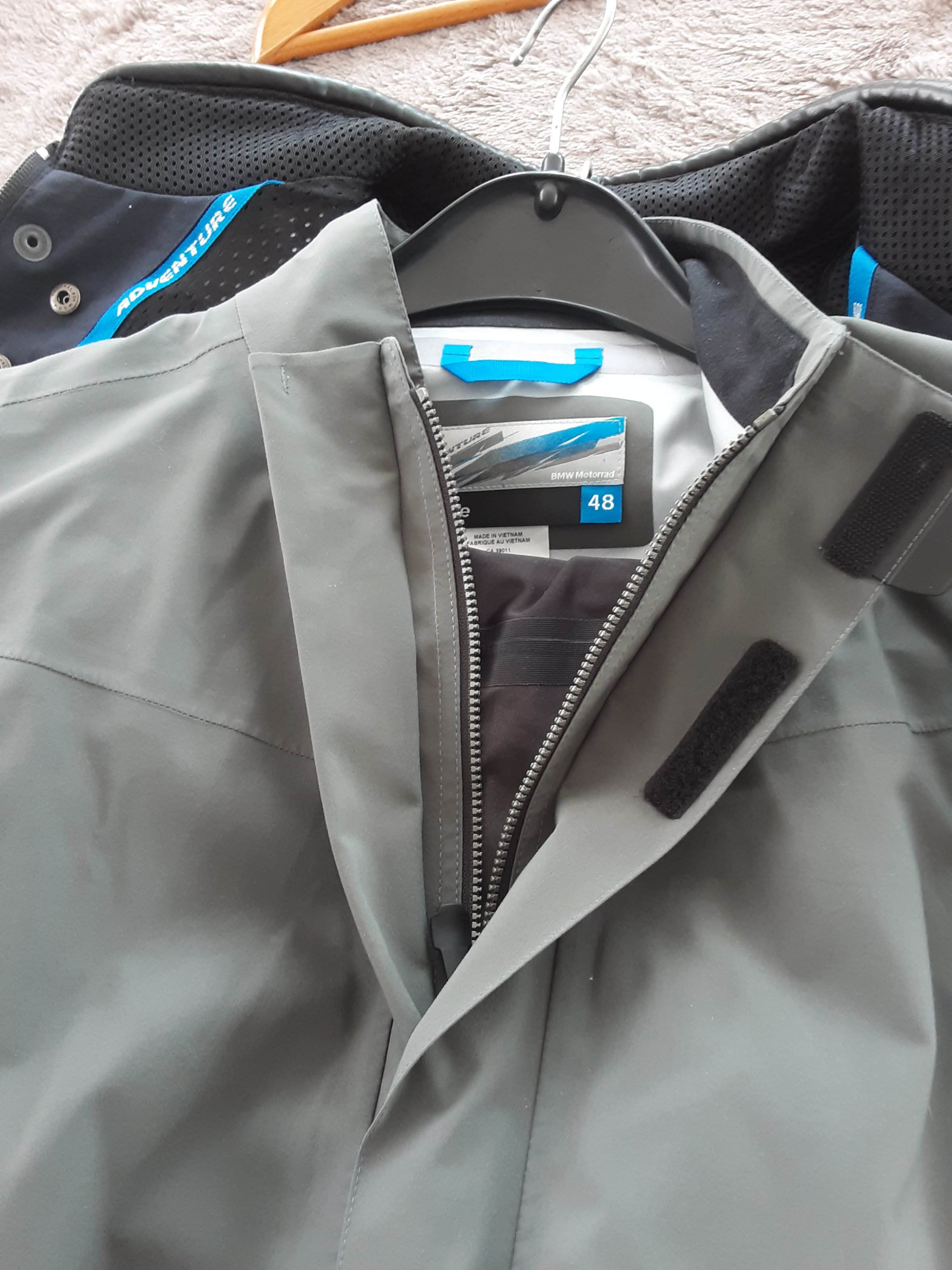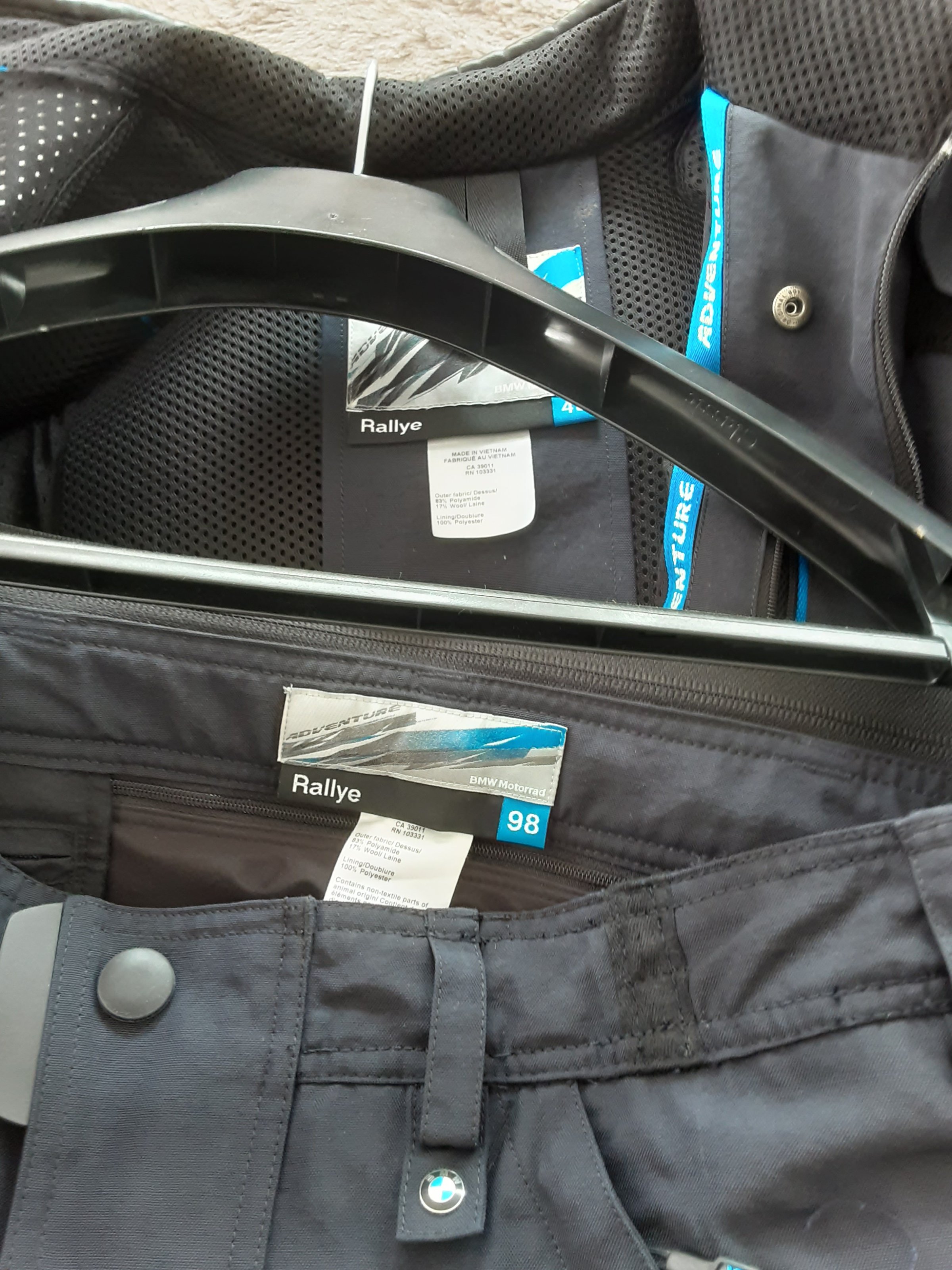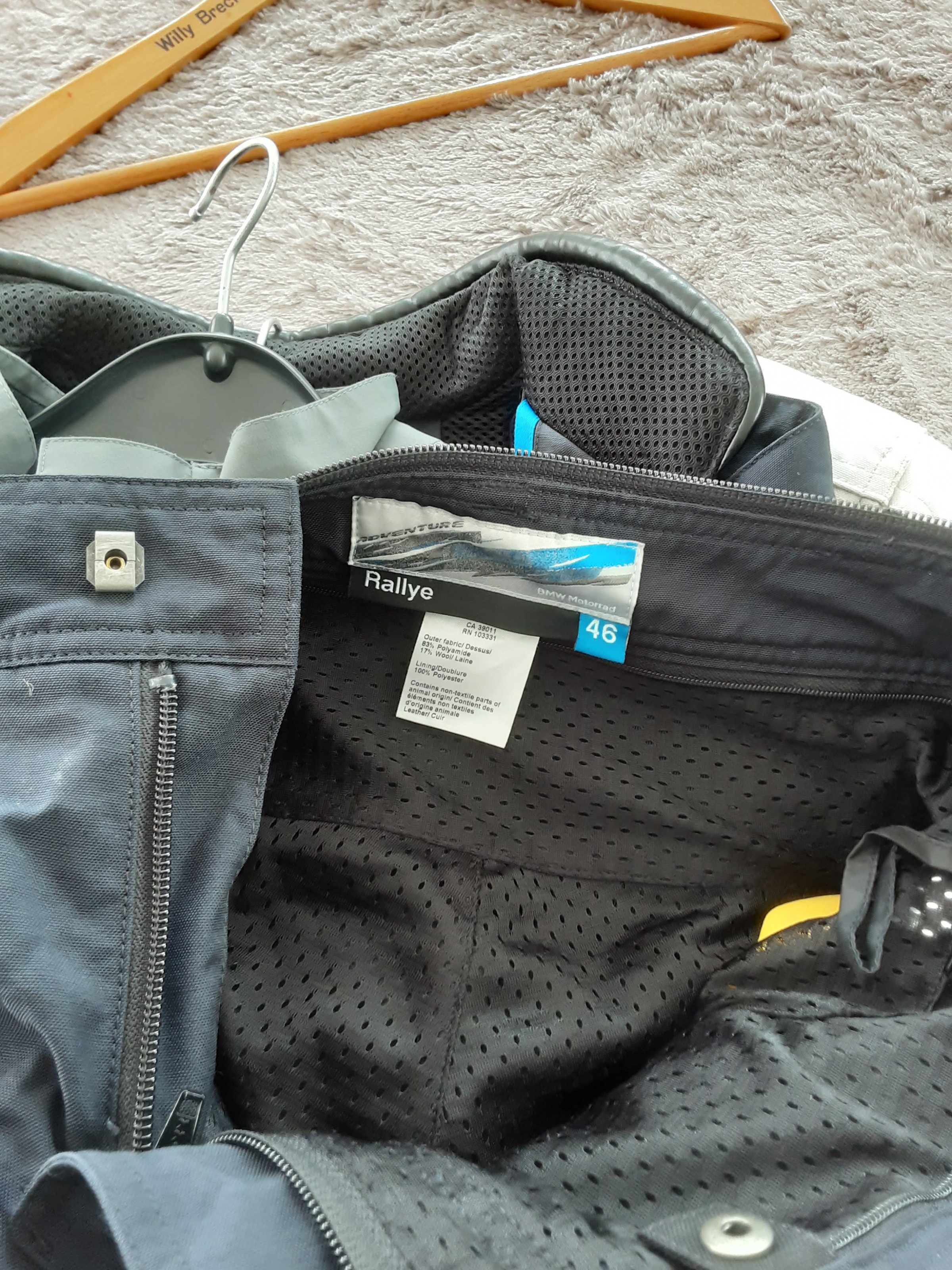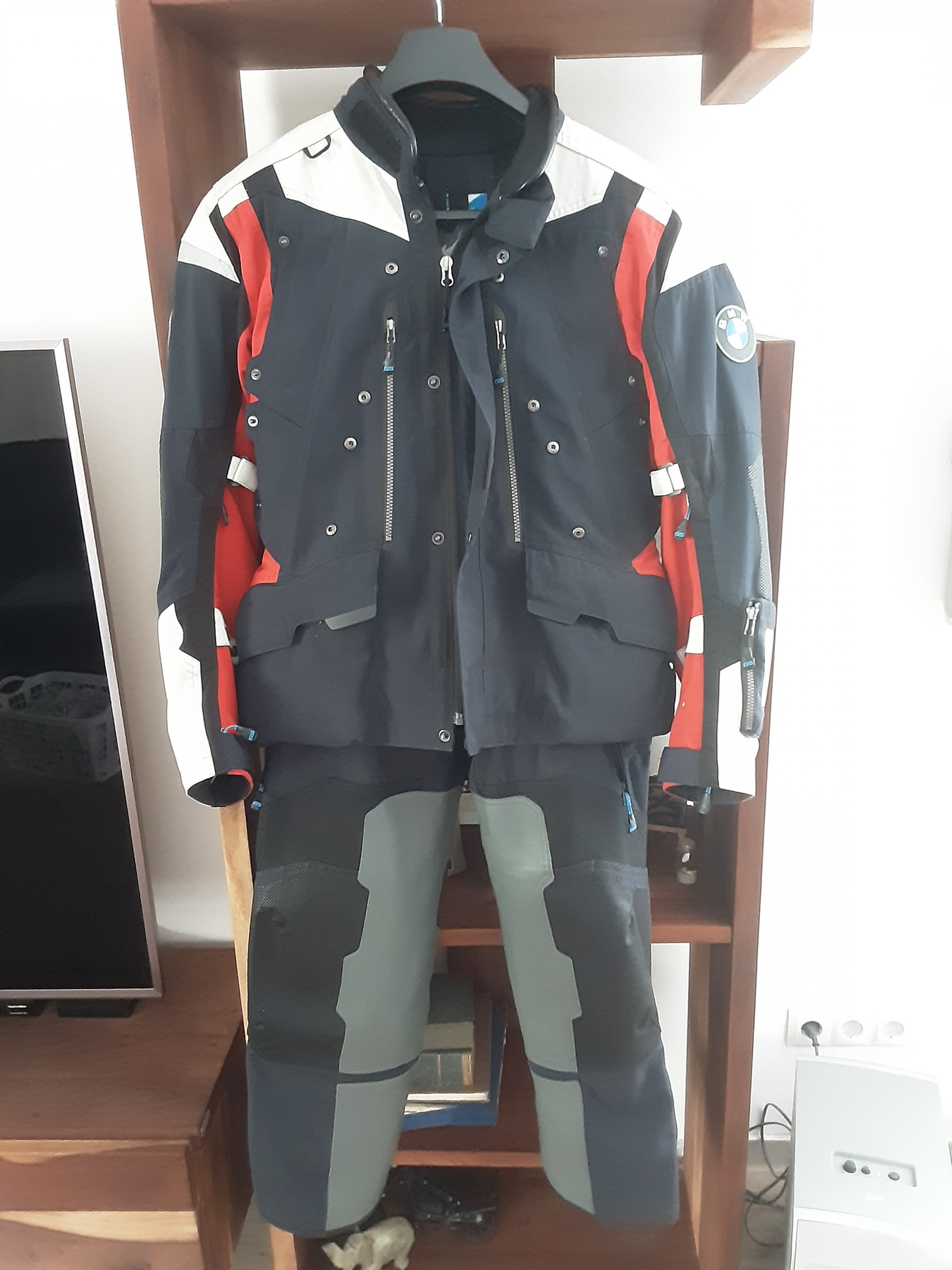 Jacke wurde ab und an mal getragen.... Regenschutz wurde nie getragen hing die ganze Zeit im Schrank....2 verschiedene Hosen (46 und 98er Grösse) sehr wenig getragen...alles komplett mit Regenschutz....