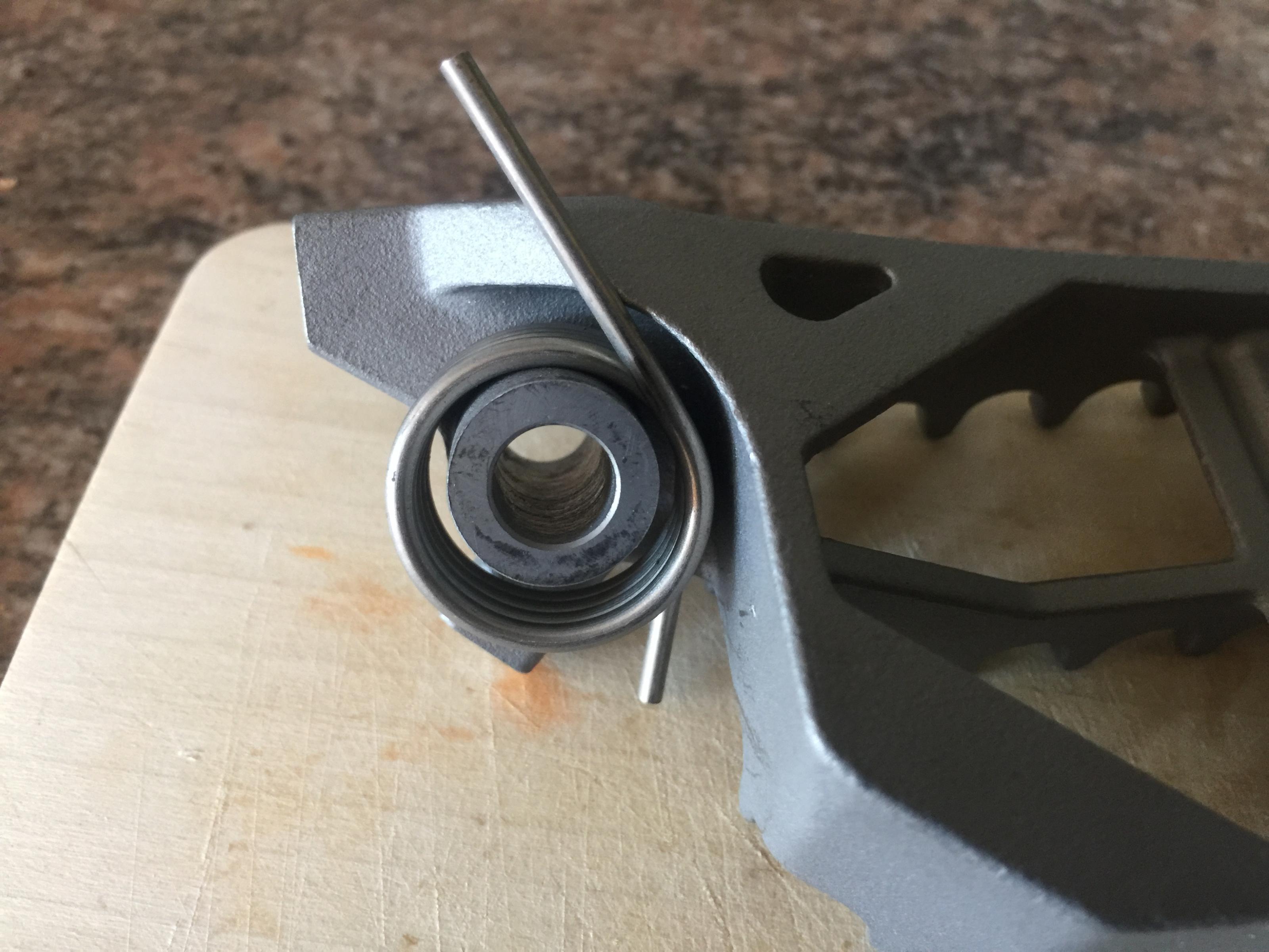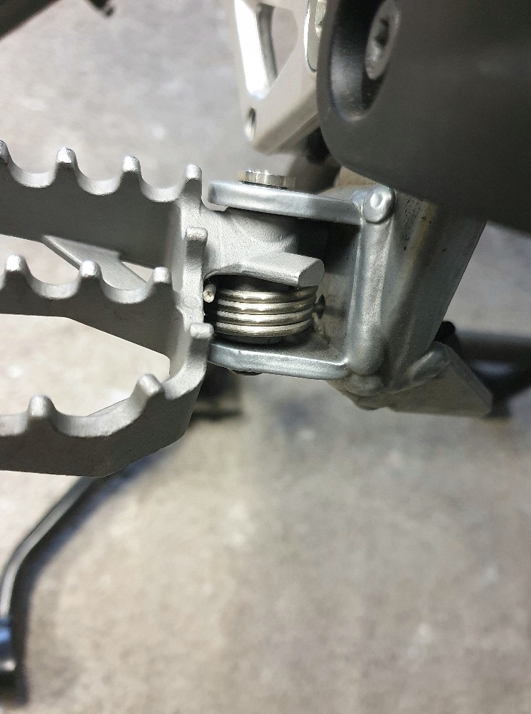 Ich habe mir über einen netten Kontakt Fussrasten der Rallye gekauft und wollte diese gestern an meine TB anbringen. Der Abbau der alten Rasten war unproblematisch. Begonnen habe ich dann die rechte Rallye Raste anzubringen. Hierfür habe ich die original Feder verwendet. Kurz gefummelt und es passte. Dann machte ich mich an die linke Seite ran. Hier stellte sich auf einmal das Problem auf, dass die original Feder nicht mehr kompatibel war und ich die Feder nicht mehr ins Loch bzw über die Raste gespannt bekam. Die mitgelieferten Federn waren auch nicht verwendbar, da diese vom Durchmesser mindestens 3-4 mm zu weit sind.