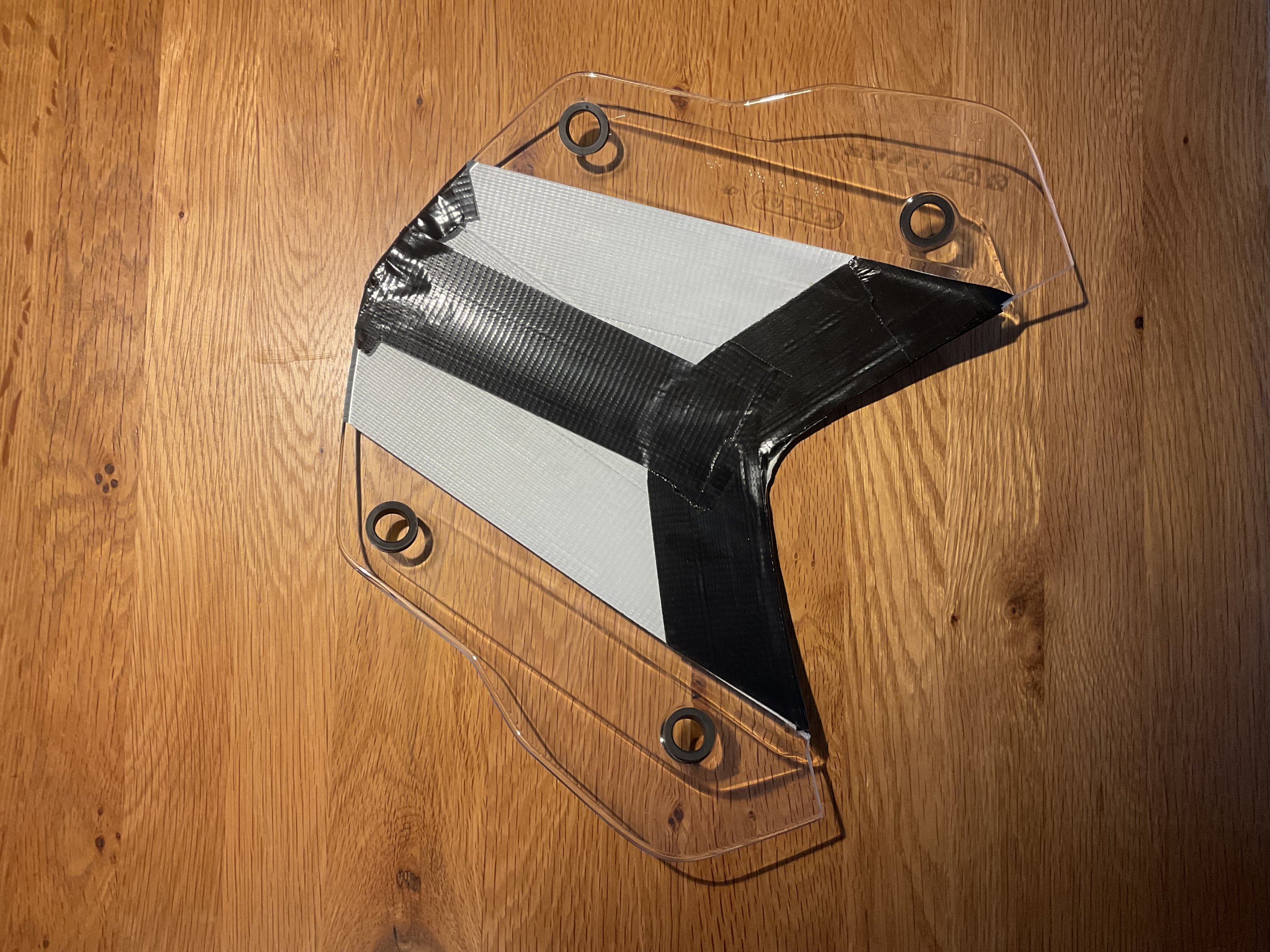 Hab es für mich mit Panzertape „verschönert“, vermutlich sieht es mit Tönungsfolie aber besser aus