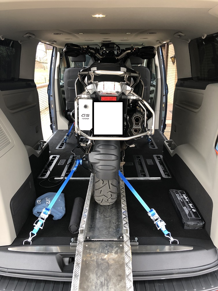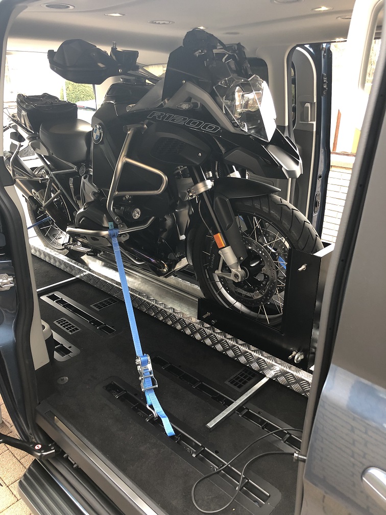 Diese wird ganz einfach in den Van/Bus gelegt und zusammen dann mit dem Motorrad verzurrt.