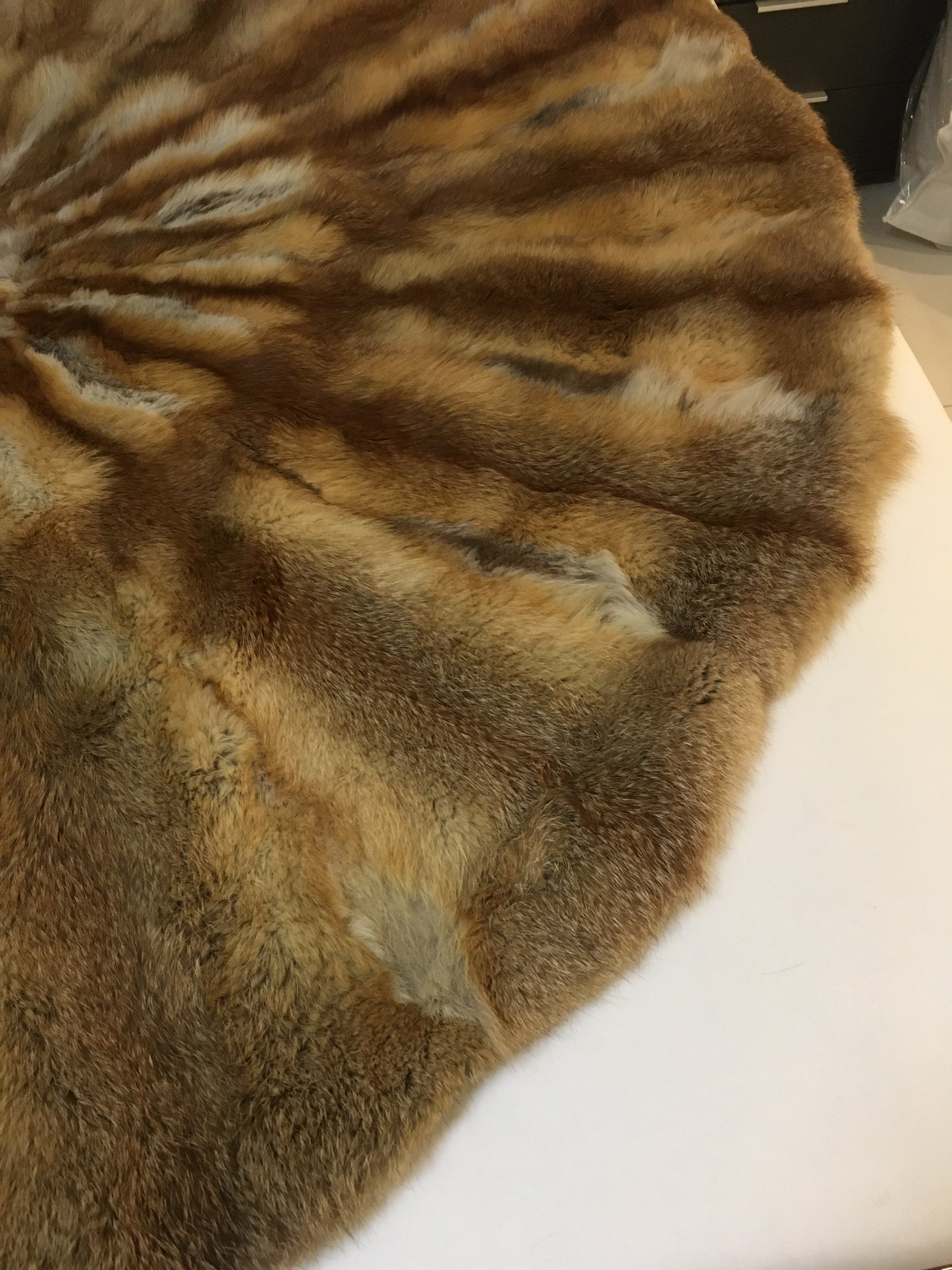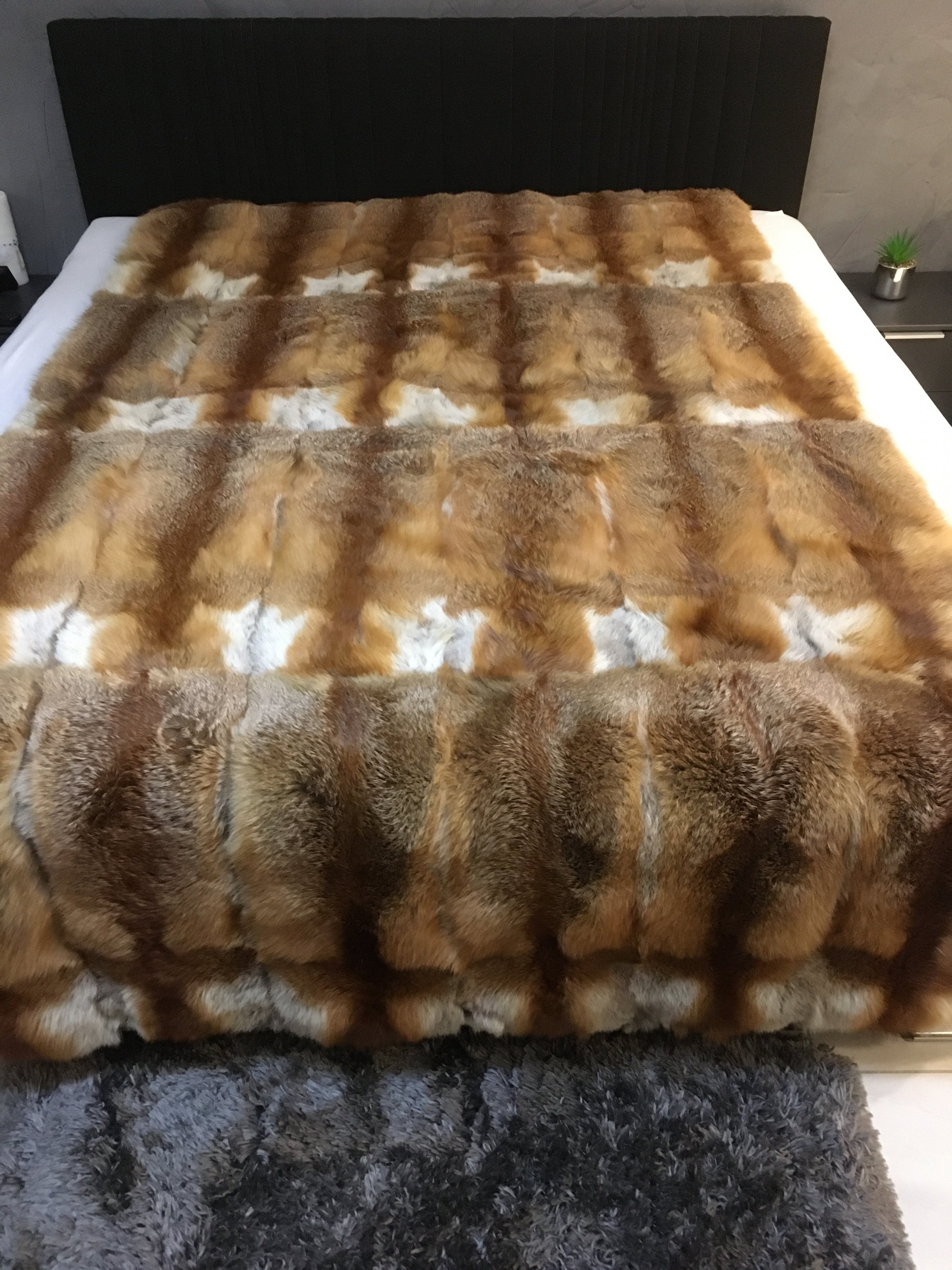 rechtzeitig zu Weihnachten, biete ich Euch eine sehr schöne Fuchsfelldecke an. Super gearbeitet mit Lederumkettelung und toller Hinterfütterung (siehe Fotos).
