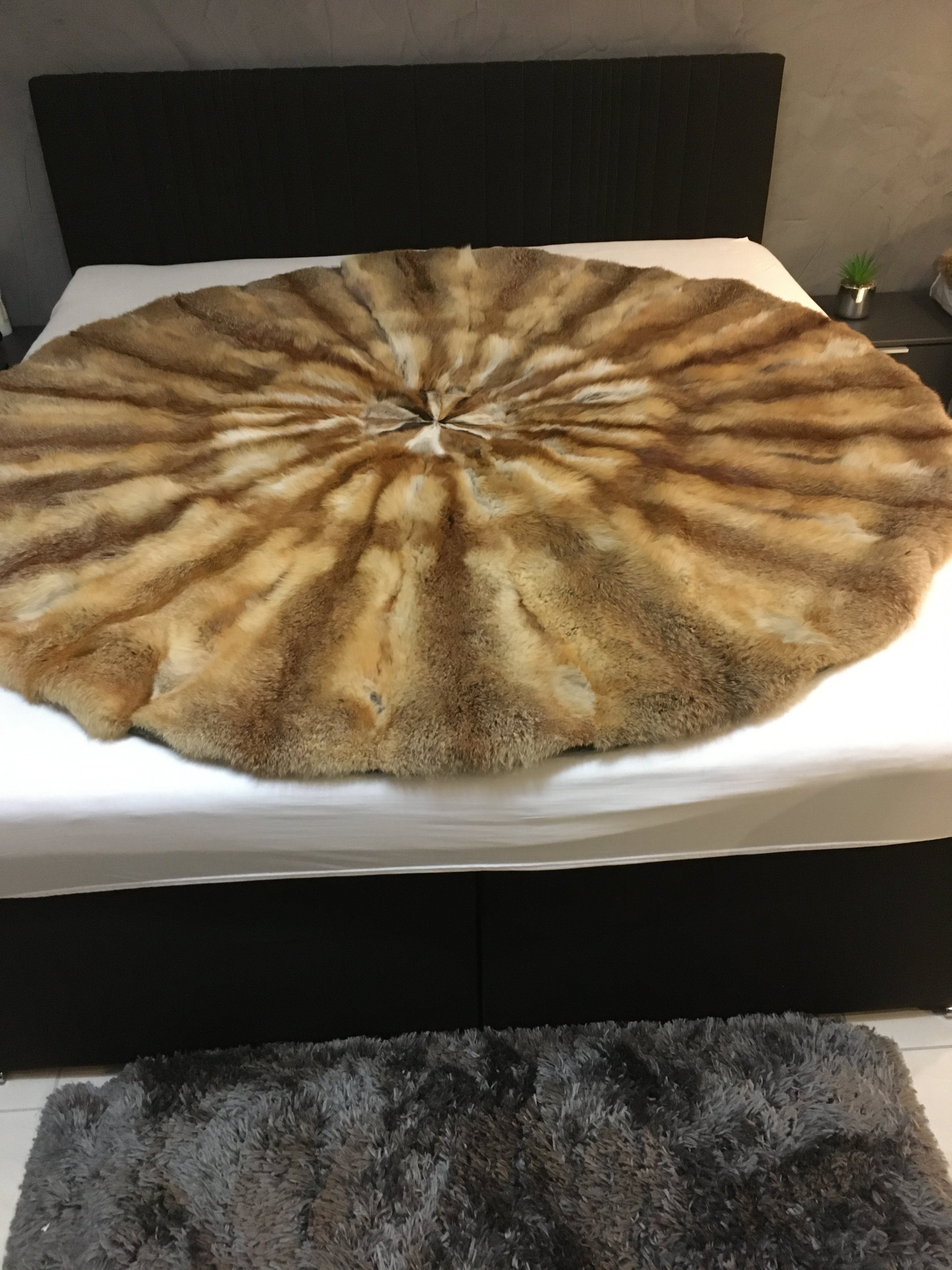 Bei Interesse hätte ich auch noch eine Decke in rund mit 190 cm Durchmesser (siehe Fotos) zum