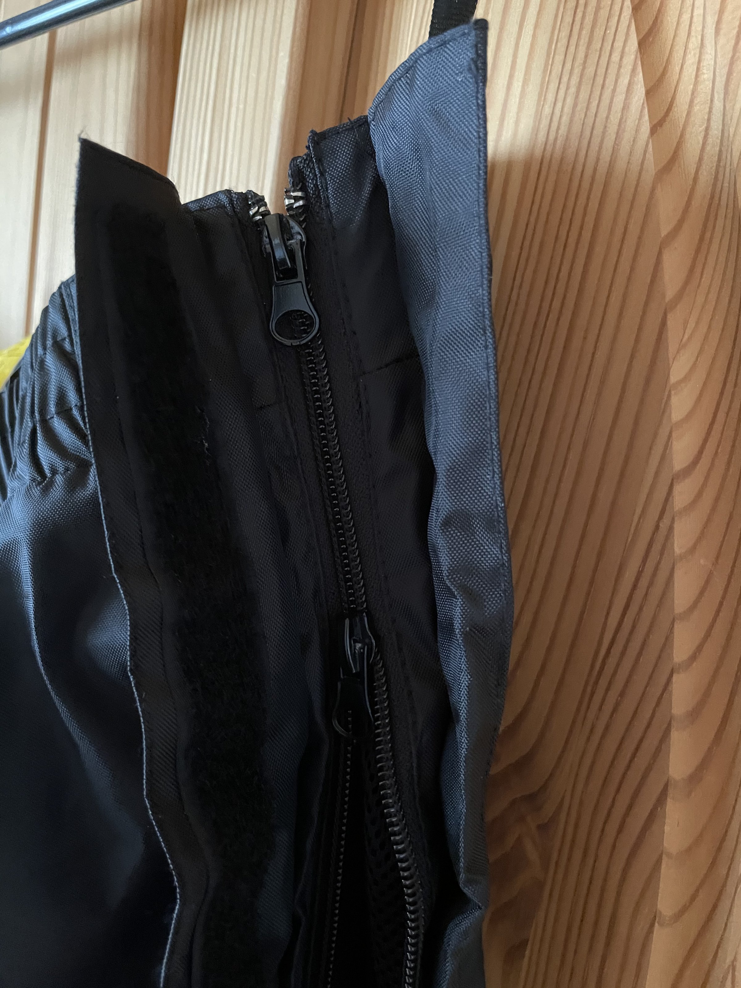 Das hat den großen Vorteil, dass man die Hose sehr einfach und schnell an- und ausziehen kann, ohne die Motorradstiefel auszuziehen !!