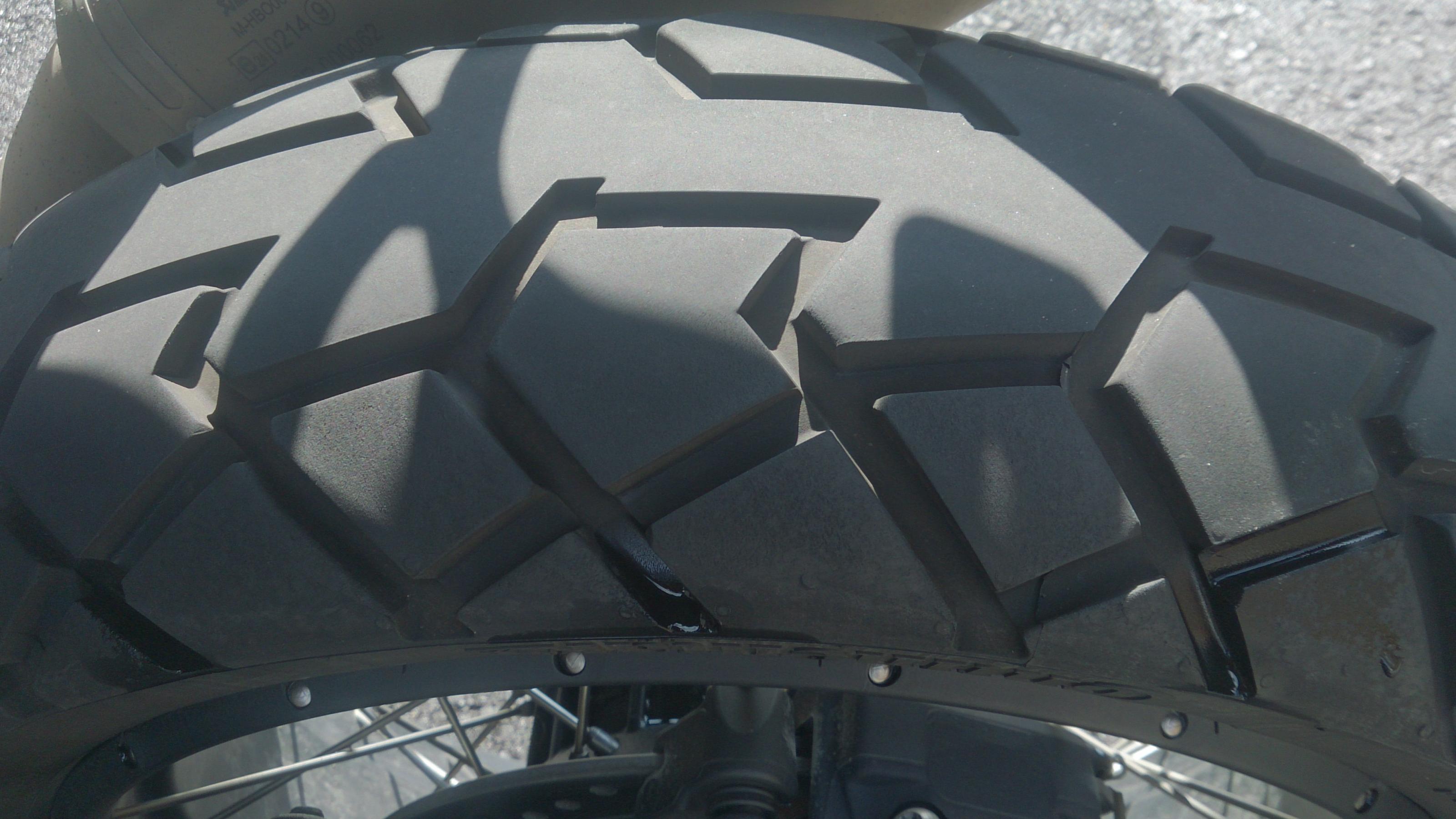 haftung in schräglagen mit ca. 7000 km, also kurz vor ende: für´s rastenschleifen reicht es bei der adventure 1200 durchaus - ohne auch nur den hauch von unsicherheit aufkommen zu lassen - bitumenstreifen mal ausgenommen, die mag er gar nicht -wie fast alle reifen.
