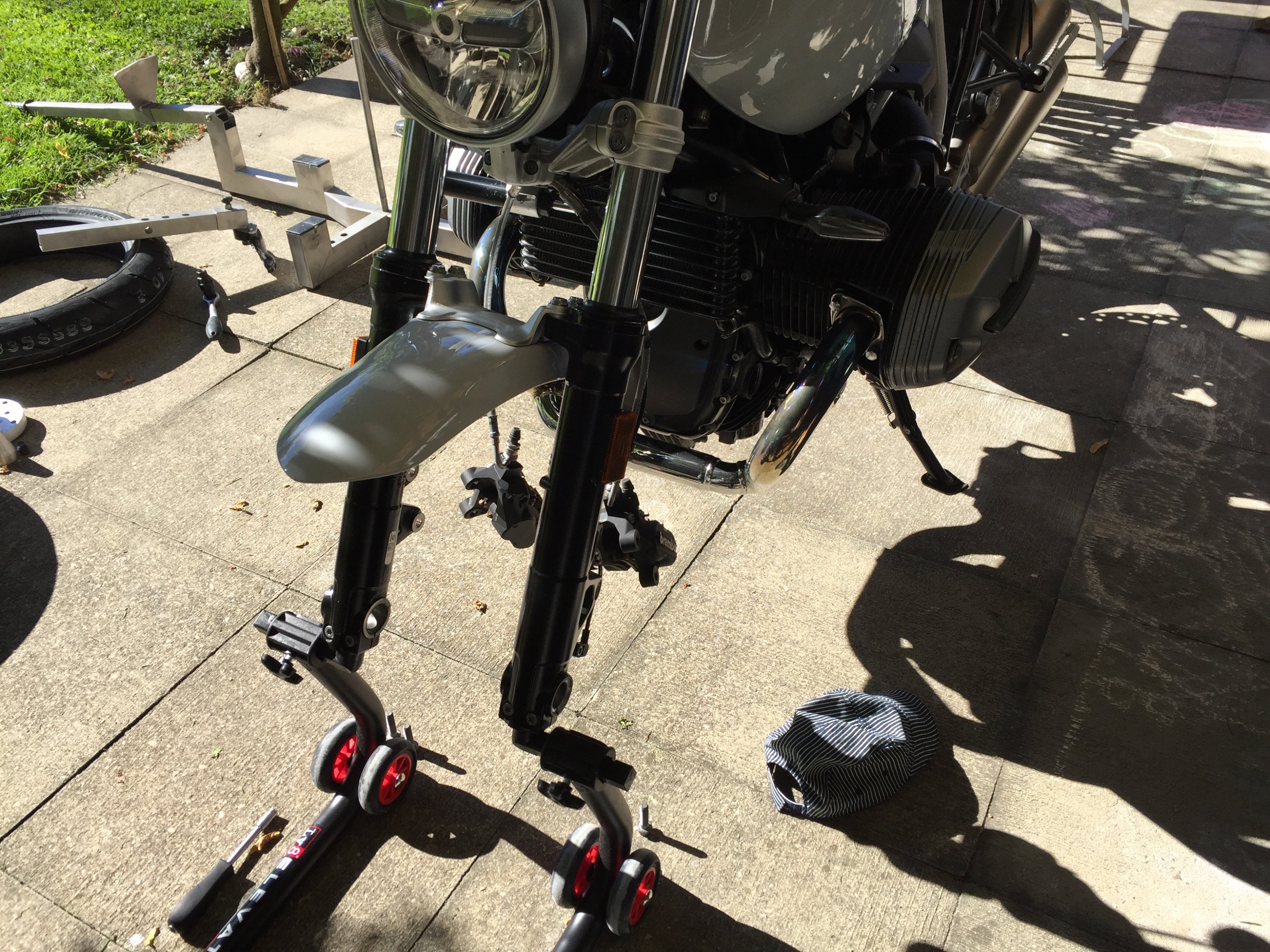 Vorderradausbau leicht gemacht: bei der Pure deutlich einfacher als an der S 1000 ...