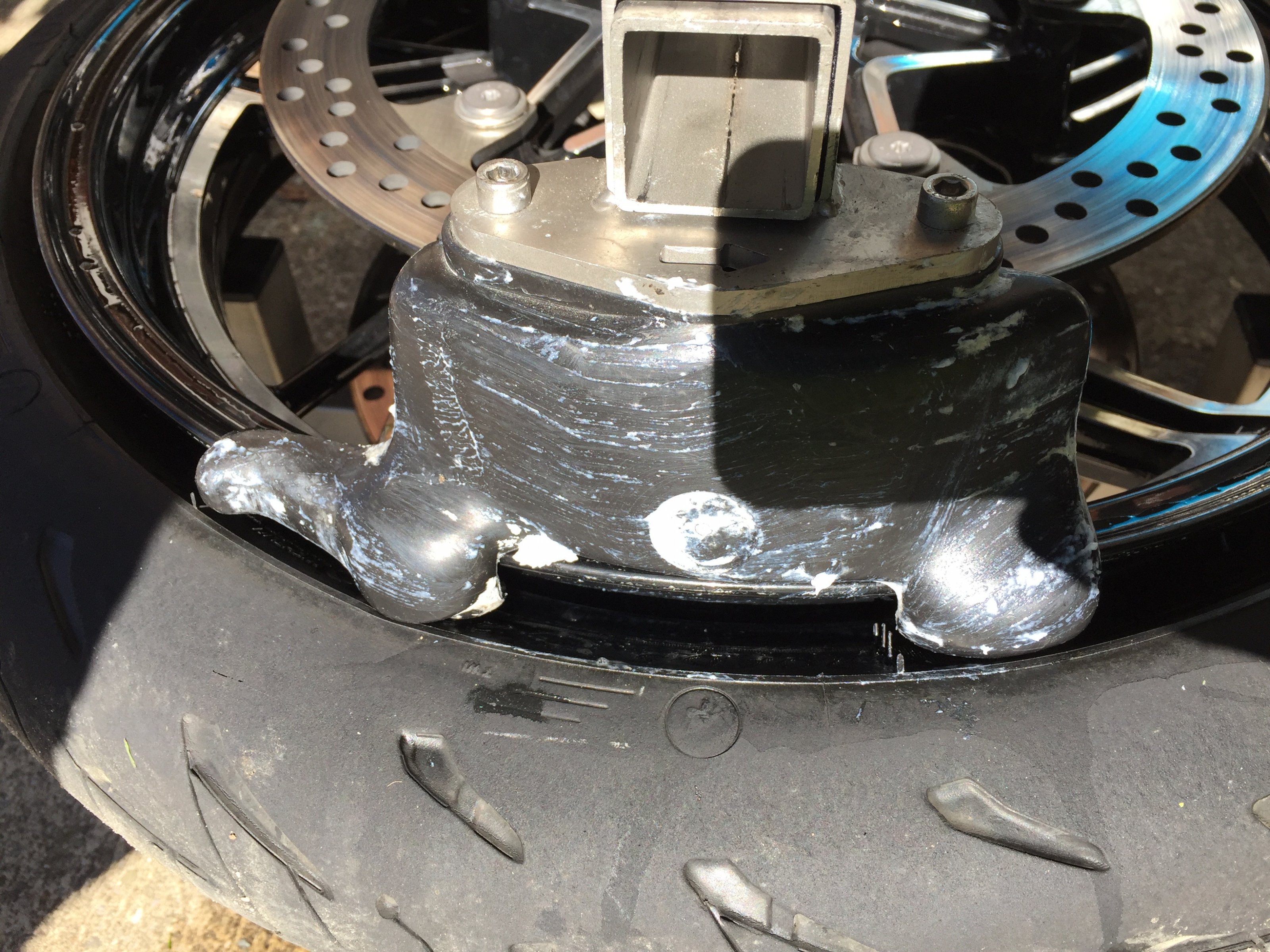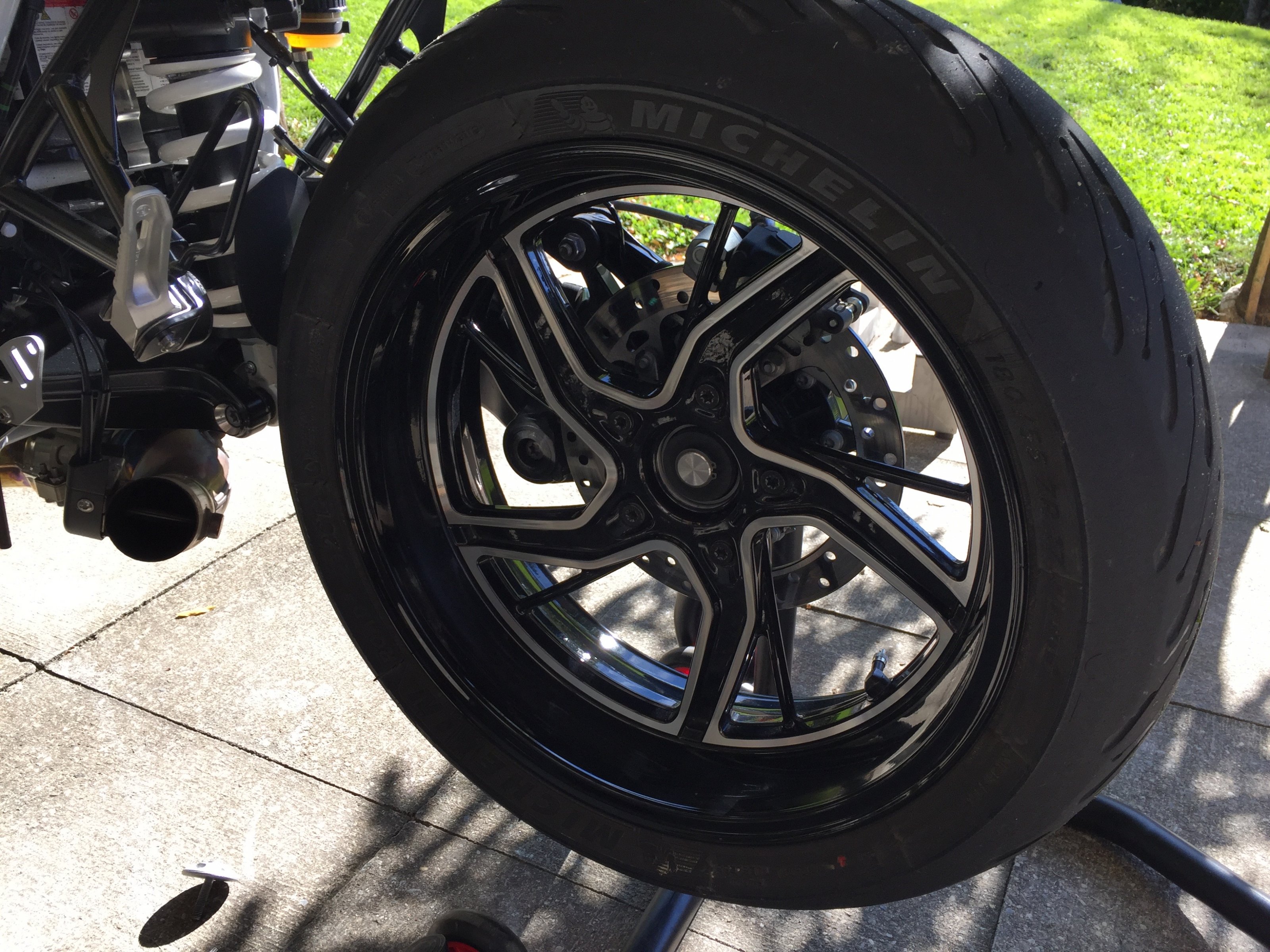 Ich habe jetzt Speichenfelgen auf der 1250GS, womit die Reifenmontage scheinbar leichter ist, als bei den Gussfelgen.