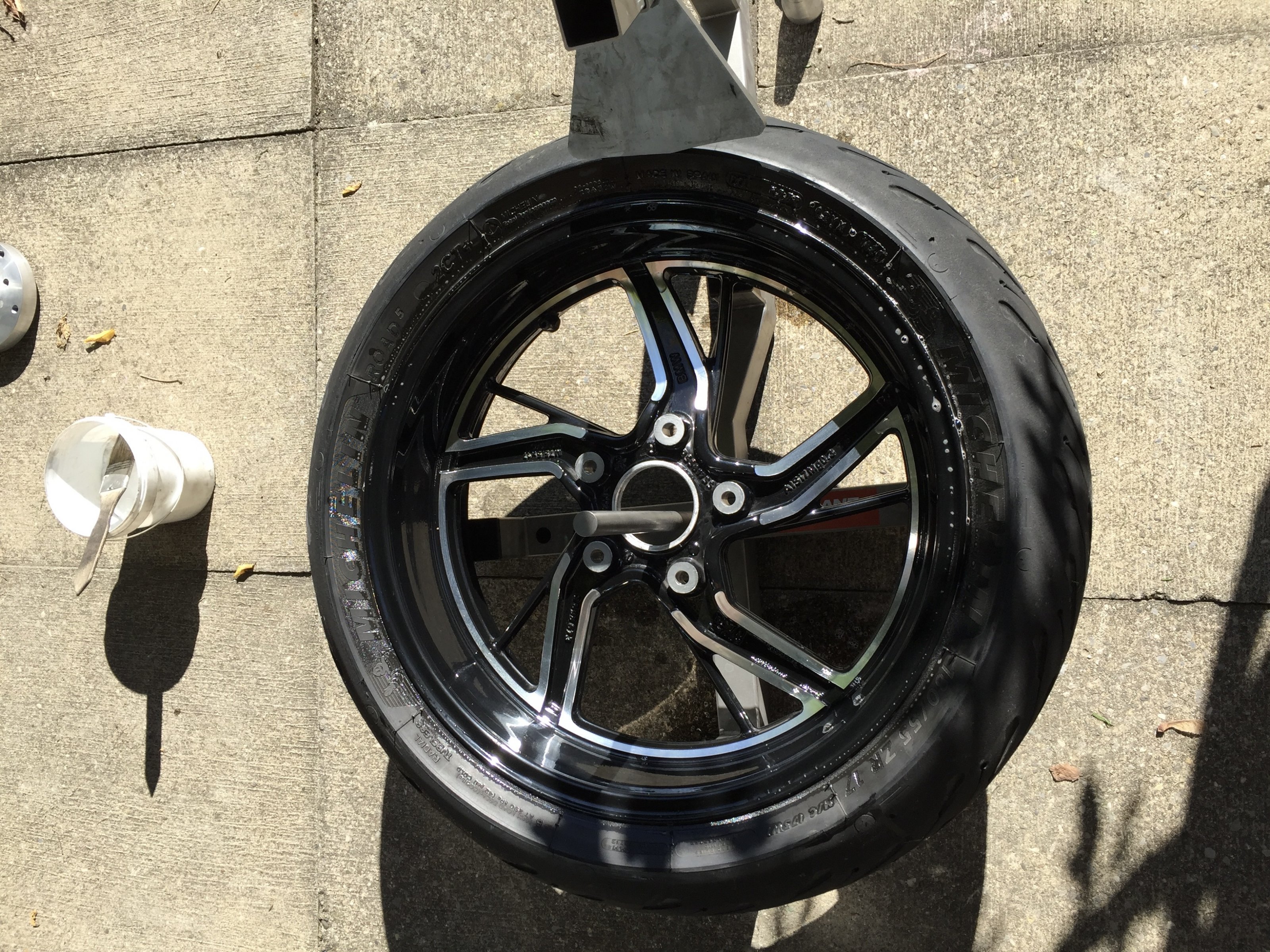 Nachdem die Road 5 zum Fahren nicht mehr wirklich zu gebrauchen waren, musste sportlicher Ersatz her. Da ich bekanntlich an Reifenmontagephilie leide, nutzte ich das schöne Wetter heute für den Wechsel. Und was wäre so ein(e) Montag(e), ohne nachträgliche Kontemplation der geknipsten Bilder?!