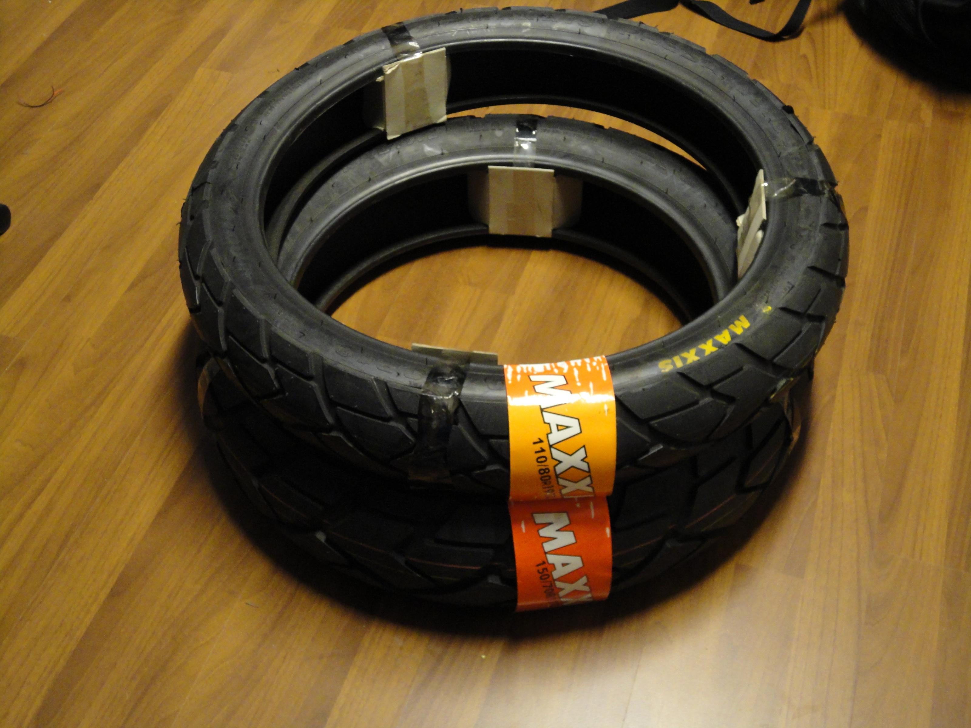 Es handelt sich um die Maxxis Presa Detour in 150/70-17 (DOT 0912) und 110/80-19 (1109). Waren noch nie montiert.