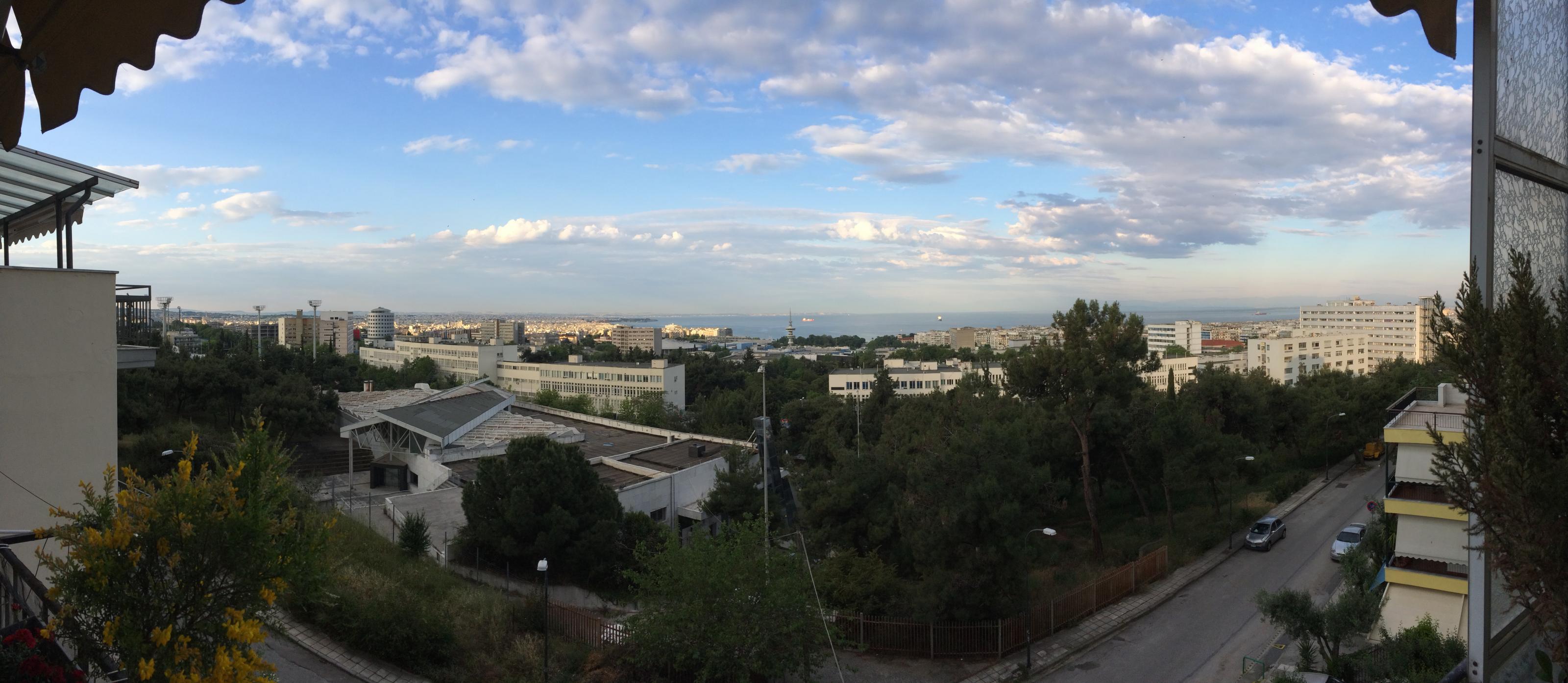 Abends in Thessaloniki angekommen sind wir direkt mit dem Taxi zu Florian gefahren, einem Couchsurfer, der seit einigen Jahren mit seinem Freund in Thessaloniki wohnt. Er hatte uns einige Monate zuvor in Bremen schon einmal besucht und wir waren sofort auf einer Welltenlänge. Die Wiedersehensfreunde und Gastfreundschaft war toll, es wurde natürlich griechisch gekocht und mit einem traumhaften Blick auf den Hafen haben wir den Abend auf der Terrasse ausklingen lassen.