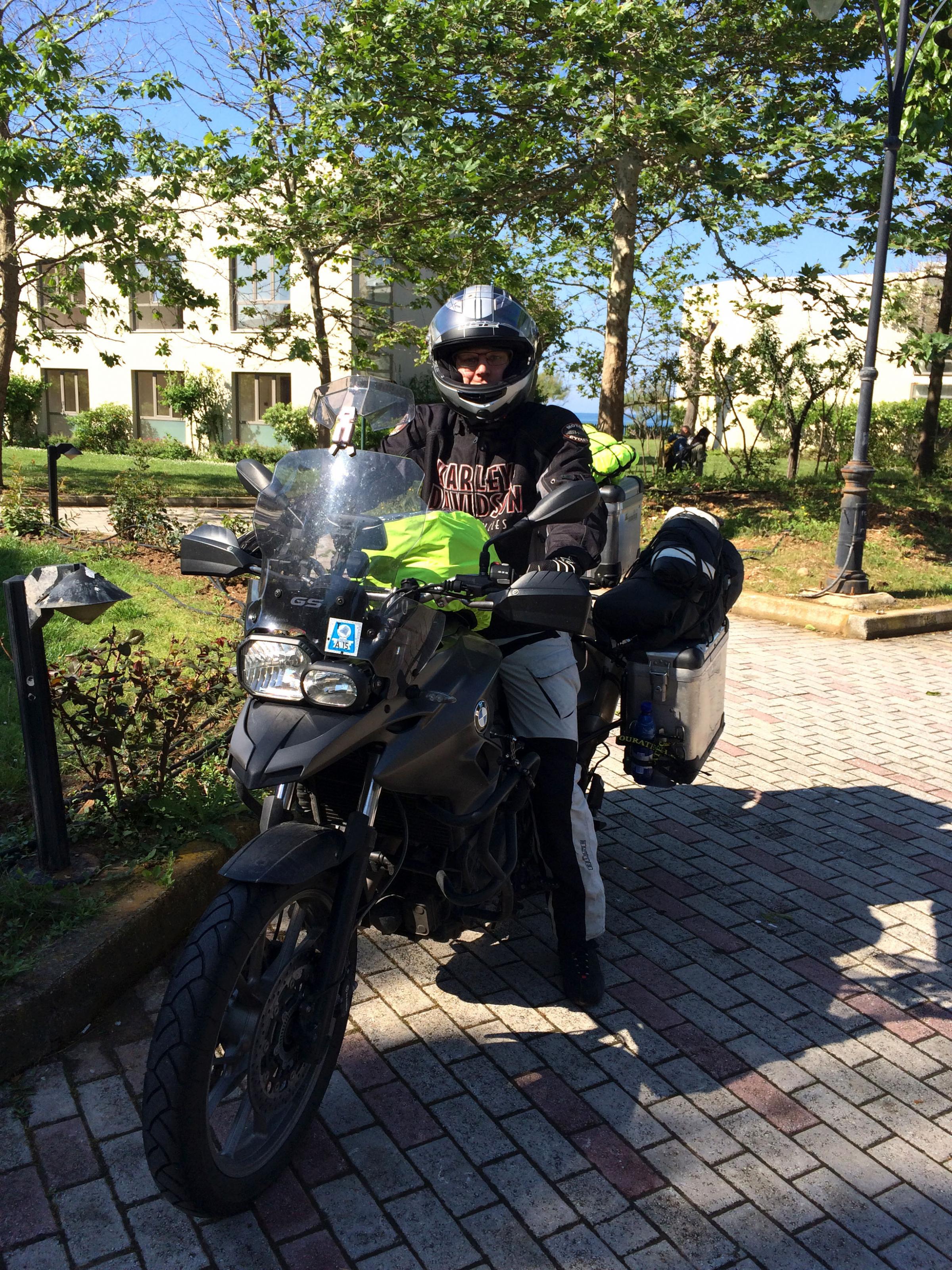 Gegen 18 Uhr waren wir im vorher gebuchten Hotel in Alexandroupolis. Der Page war sehr verwundert, was wir alles von einem Motorrad abgeladen haben, aber mit jedem Tag der Reise lernt man dazu...