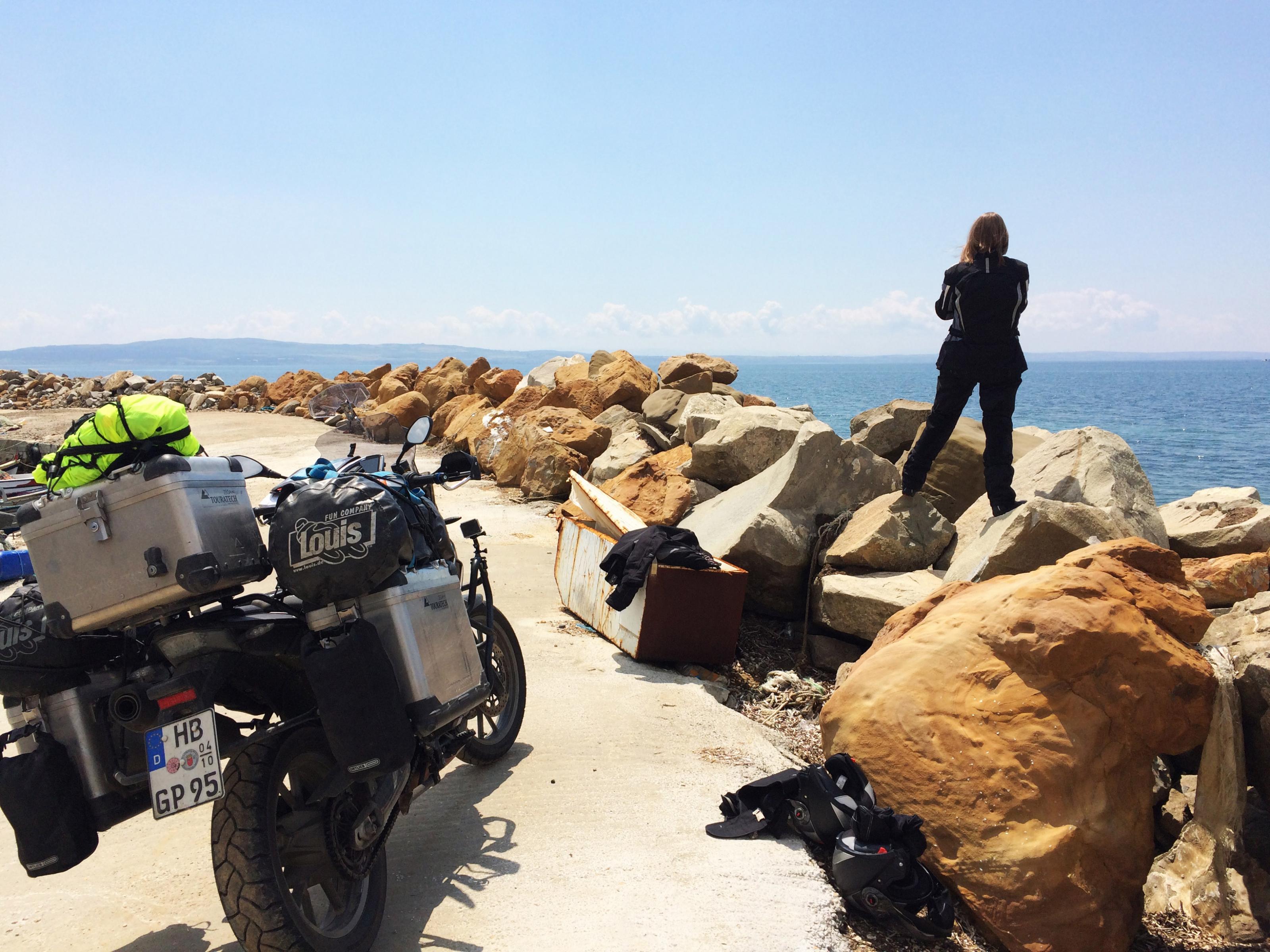Weiter ging es dann überwiegend über Landstraßen, zum größten Teil immer am Meer entlang. Außer, dass wir einmal den Tank bis auf 0,4 l leer mangels Tankstelle leer gefahren haben und mir fast ein streunender Hund ins Bein gebissen hat, keine besonderen Vorkomnisse.