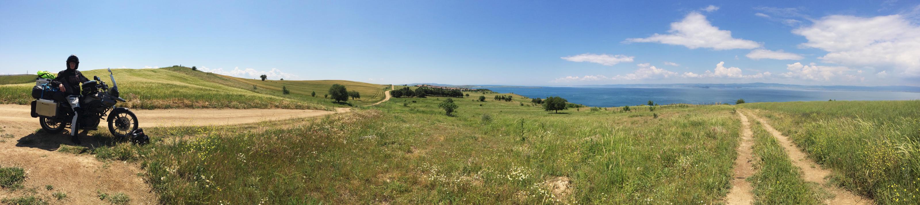 Dann auf die Autobahn und später Landstraße Richtung Kavala, an den Seen Limni Koroneia und Limni Volvi vorbei. Wie wurde uns vor der Reise Angst über die Straßenverhältnisse in Griechenland gemacht. Alles völlig unberechtigt, mit Sicherheit gibt es auch schlechte Straßen, aber die Autobahnen und Landstraßen sind in gut fahrbarem Zustand, mit einer Eduro auf jeden Fall locker. Auf der Autobahn fährt kaum ein Mensch (Maut, heute gesamt 3,40 € für rund 100 km), doch auch die ist landschaftlich zum Teil sehr schön zu fahren, besonders wenn man zwischendurch mal Kilometer reißen will.