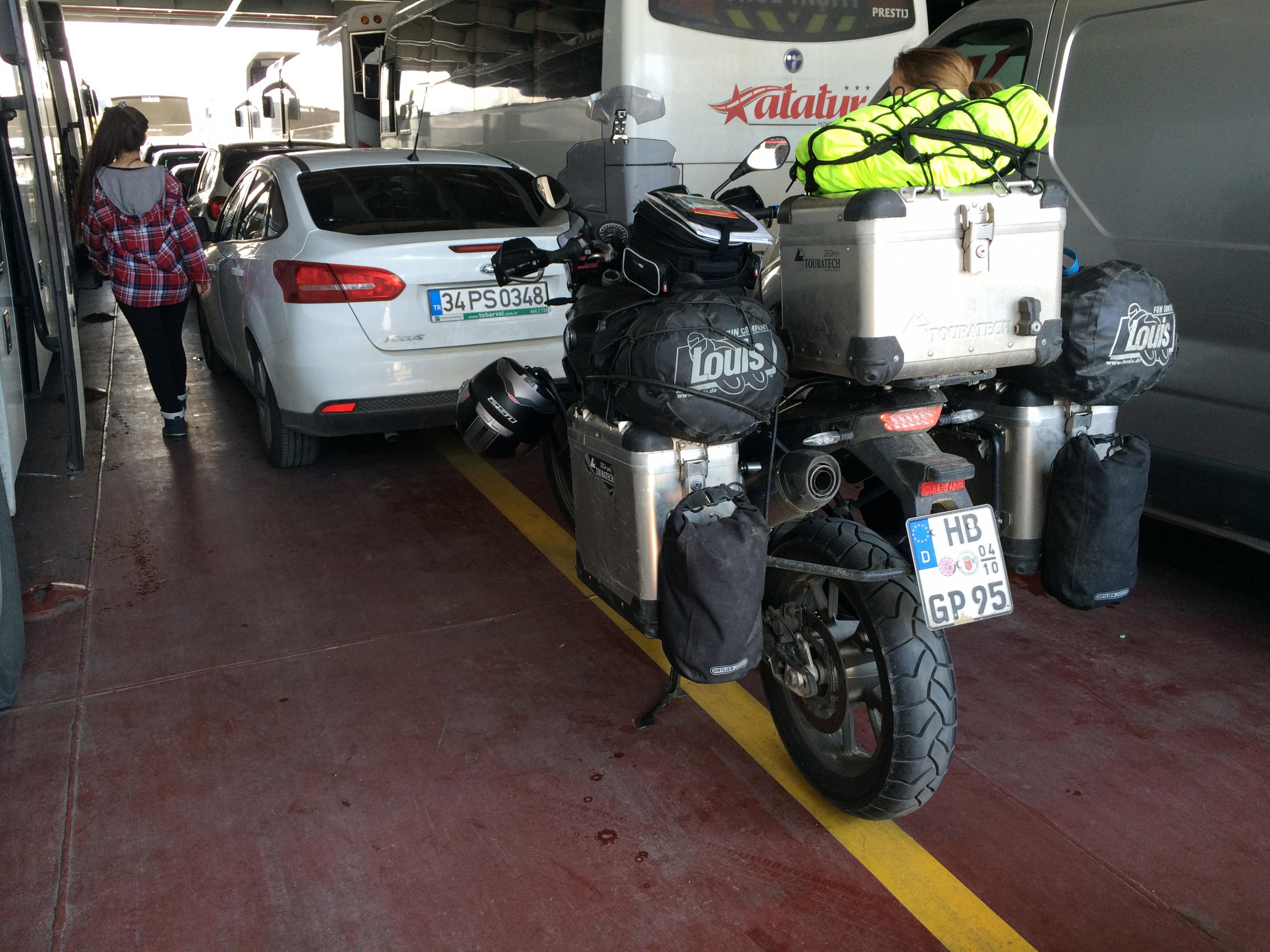 Das Motorrad hatte ich samt komplettem Gepäck und Motorradbekleidung ca. eine Woche vorher aufgrund von Schneefall und Frost mit dem Hänger von Bremen zur Spedition nach Hilden gebracht. Von der Dauer eine halbe Weltreise, aber anderes Thema.