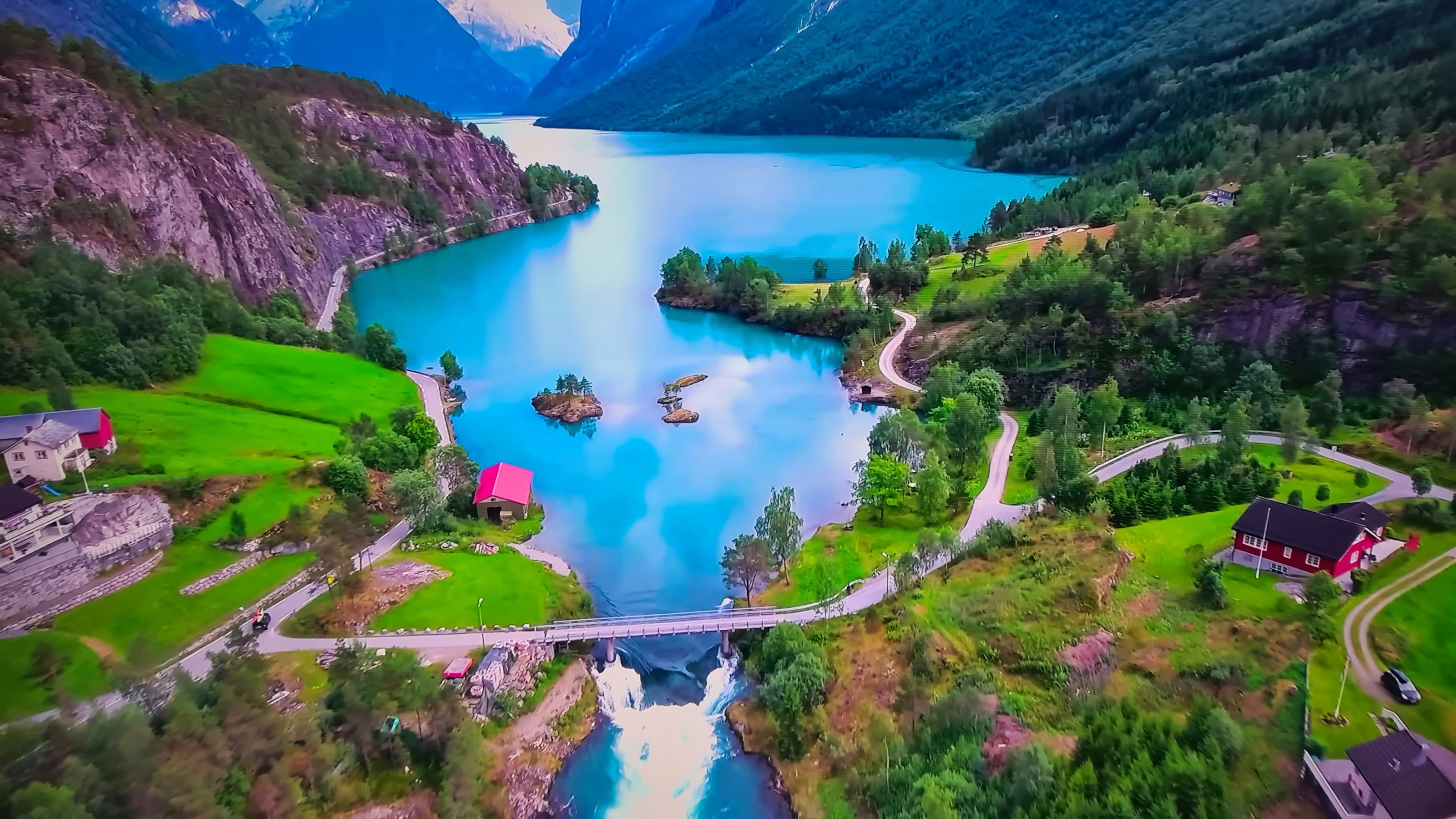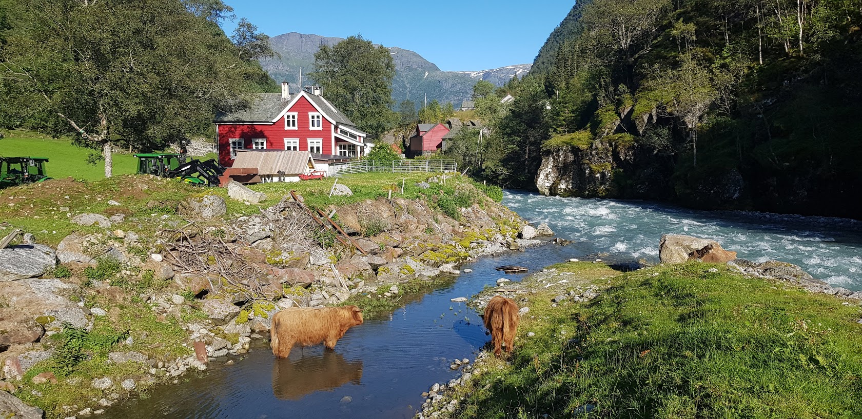 das ist der Loenvatn! Sieht beinahe so aus wie Hellesylt am Storfjord/Geirangerfjord, aber das Wasser fließt falsch herum, also kein Fjord, sondern ein See.