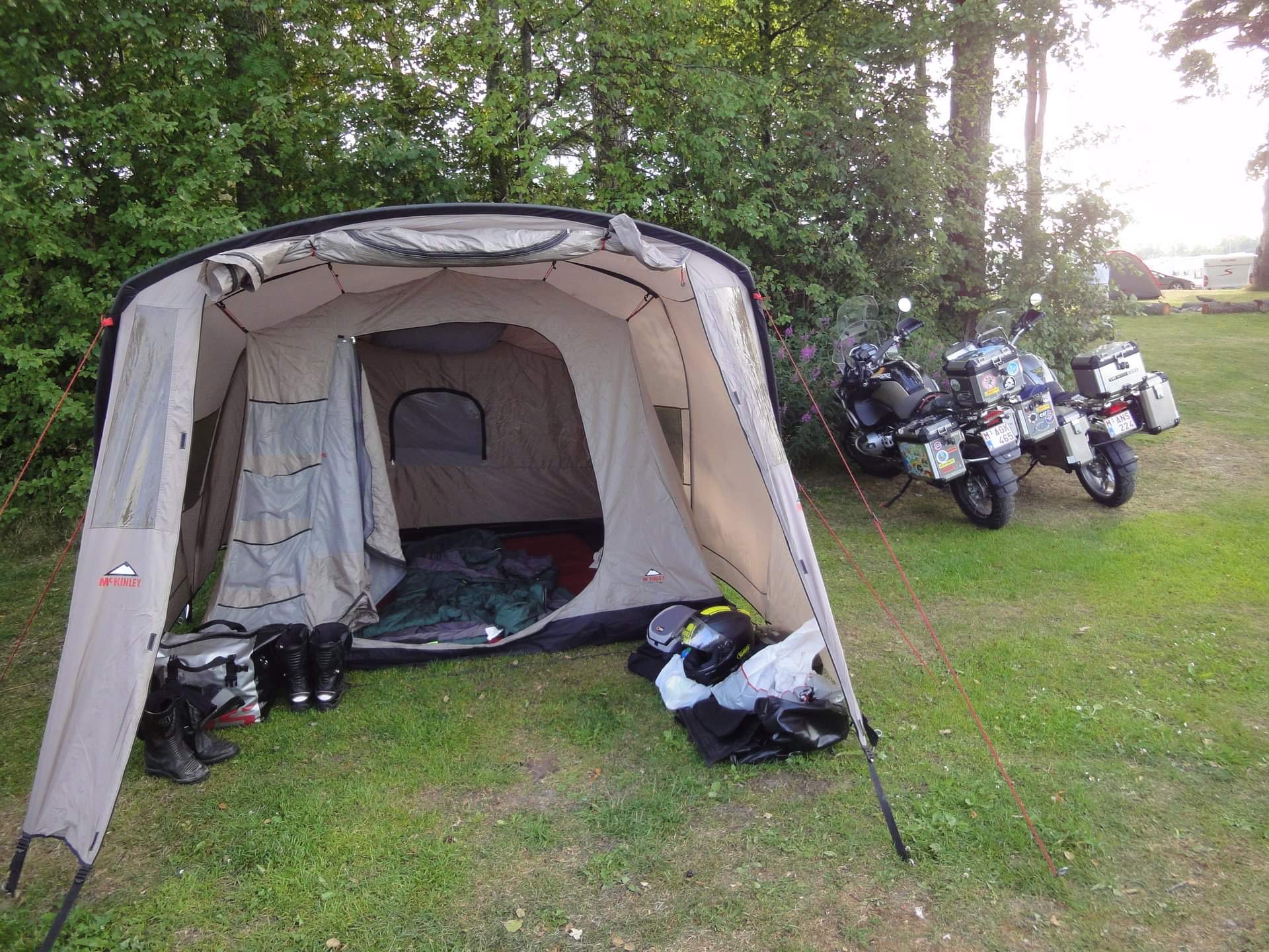 Wir sind ein Ehepaar, beide 59, aus dem Raum Berlin, machen seit Jahren Touren (jeder mit eigenem Bike) und planen o.g. Tour im Zeitraum 10.-30.09.23. Wir gehen zwar auch in Pensionen und Hotels, nehmen aber immer ein großes Zelt mit (siehe Bild), um schöne Campingplätze zu nutzen.