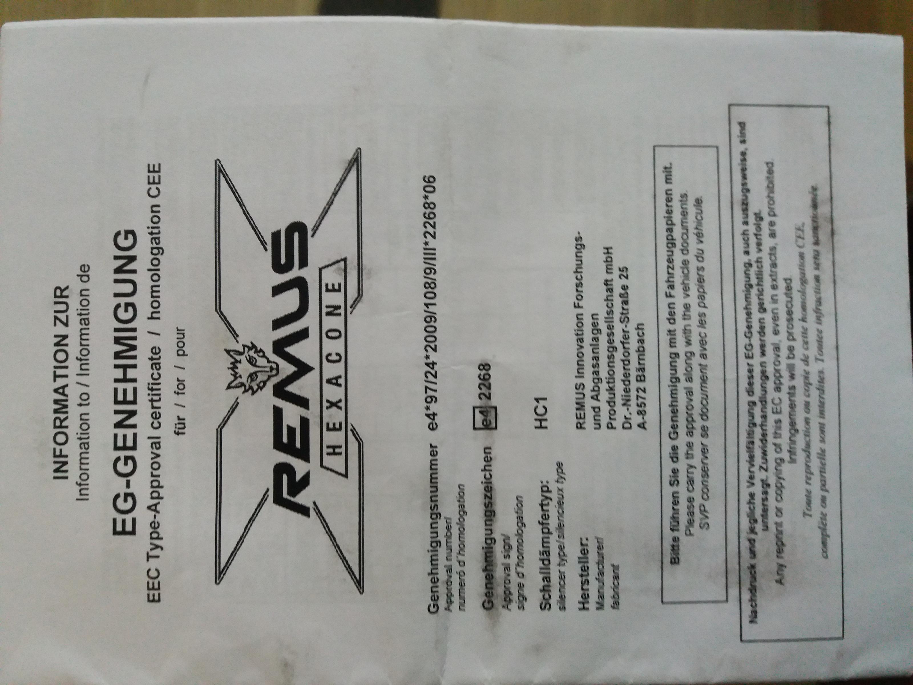Da ich mir via dem Forum einen originalen Auspuff gekauft habe, verkaufe ich einen Remus Hexacon. Preis EUR 290,-- + Versand. Standort ist im Raum Baden bei Wien, Abholung bevorzugt, Übergabe auch in SCS möglich. Privatverkauf, daher keine Garantie, Gewährleistung, Rücknahme. Der Auspuff war/ist an einer R 1200 GS, BJ 2012 montiert.