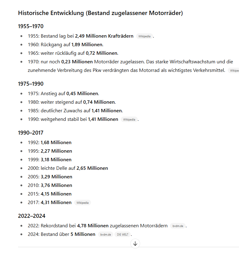Ich will jetzt die Zahlen gar nicht anzweifeln, aber gefühlt sind es deutlich weniger Moppeds als noch vor 20 oder 30 Jahren.