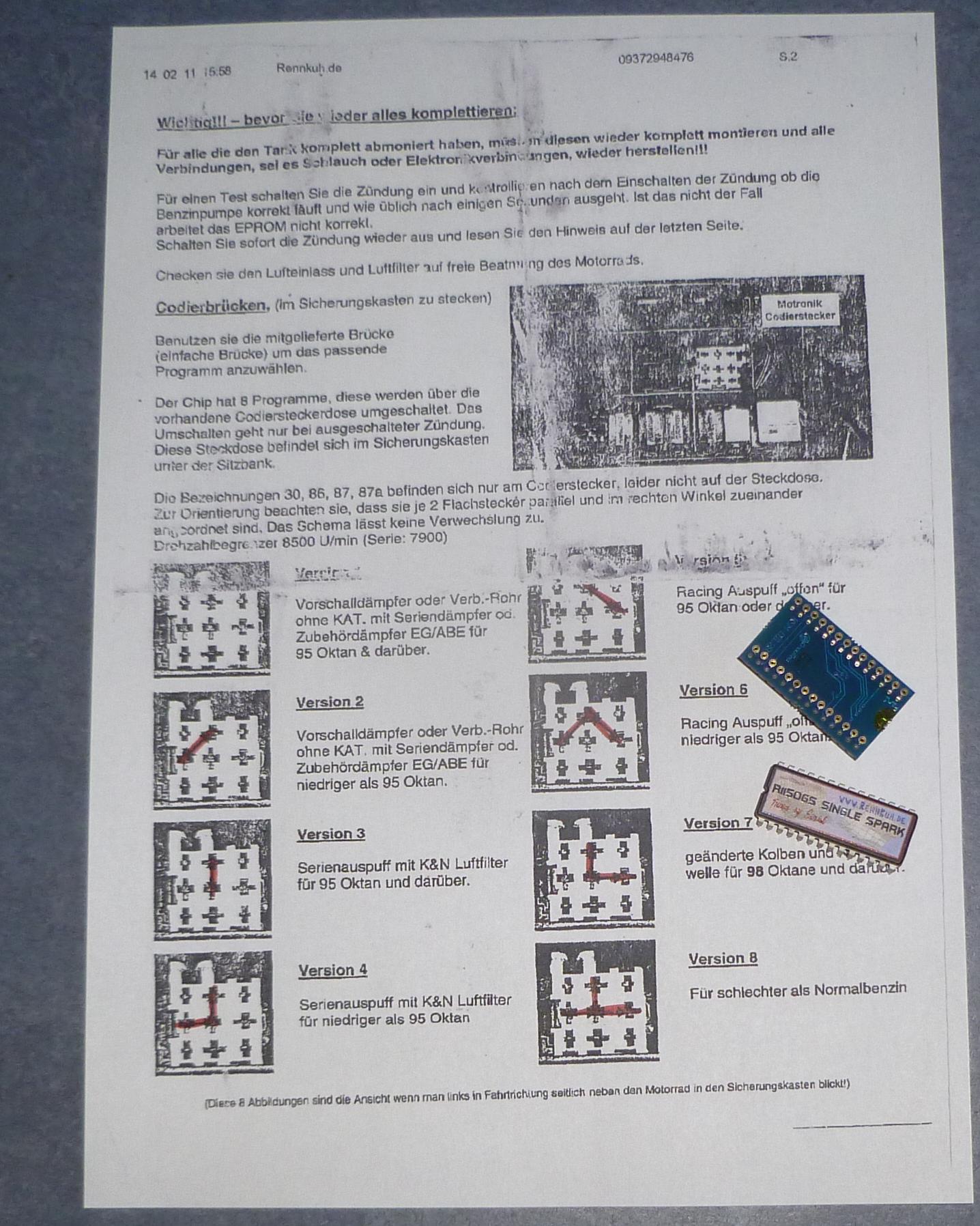 Ein Blatt für die entsprechenden Steckercodierungen & die Steckbrücke gibt es dazu