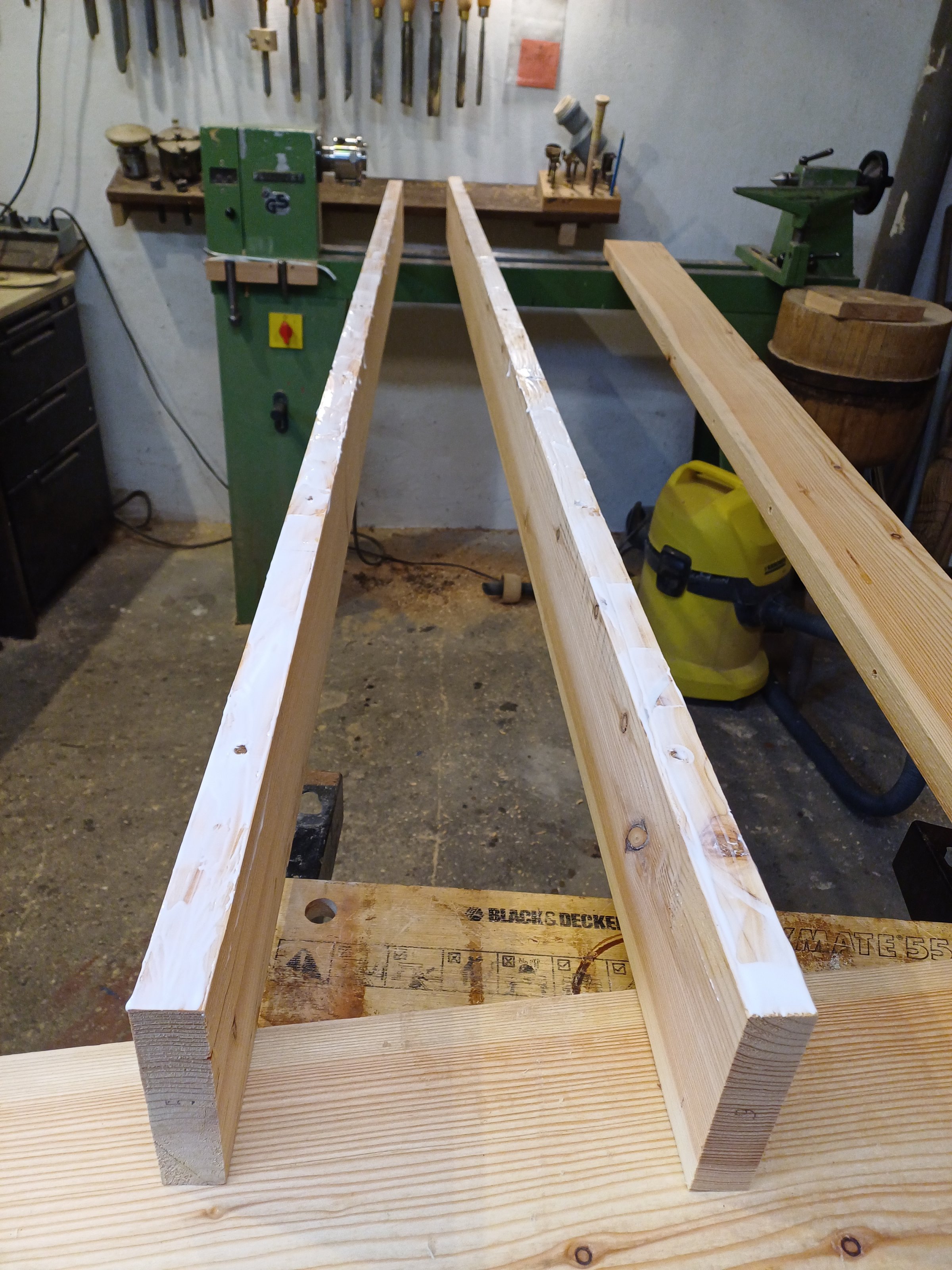 und die andere, jetzt braucht das noch etwas Handarbeit um die vom Bandsägen bedingten Unebenheiten auszugleichen, selbiges war wegen der beidseitig runden Flächen etwas tricky.