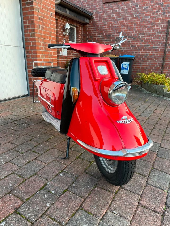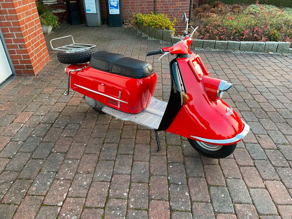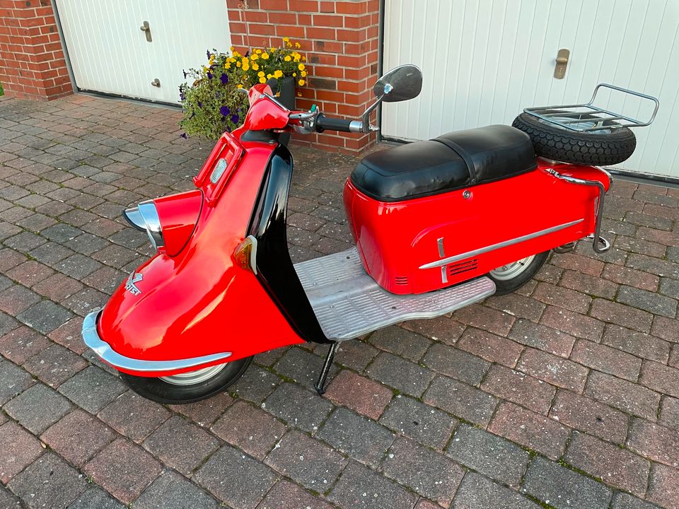 Ich verkaufe restaurierten Heinkel Roller, einen 103 A2, Bj. 1961. Der Roller wurde innerhalb der letzten 2 Jahre komplett neu aufgebaut. Dazu wurde der Heinkel komplett bis auf den Rahmen zerlegt, aufgearbeitet und wieder neu aufgebaut. Das gesamte Blechkleid wurde ebenfalls entlackt und neu lackiert. Ein komplett neuer Kabelbaum wurde verbaut, alle Bowdenzüge kamen neu, Reifen und Felgen ebenfalls neu, etc. Der Tüv wurde im Juni erst neu gemacht. Kosten soll er 3400,-€