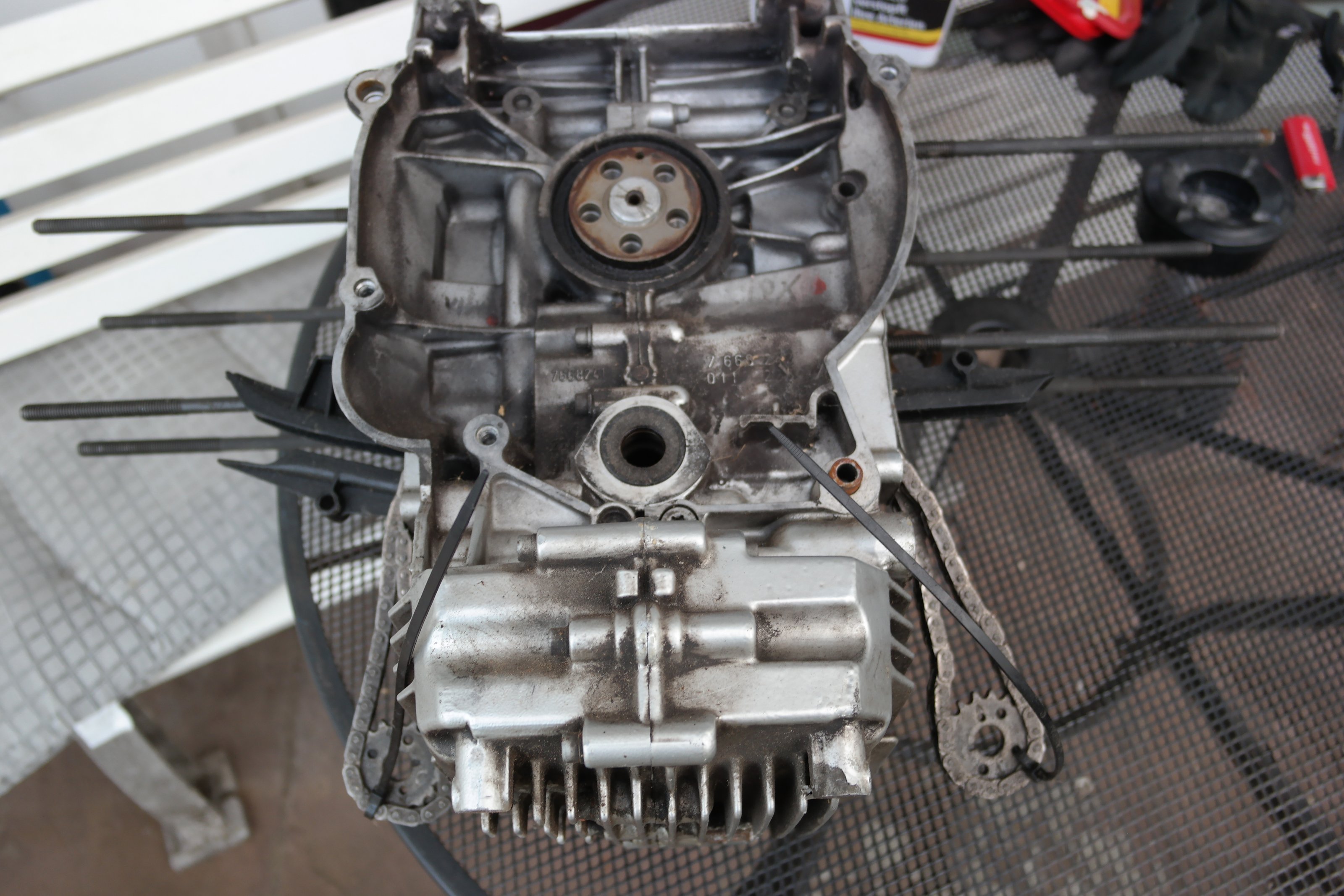 Zu meiner R 1200 GS habe ich diese Teile dazu bekommen. der Motor wurde wegen Steuerkette getauscht. 1 Zylinder fehlt.