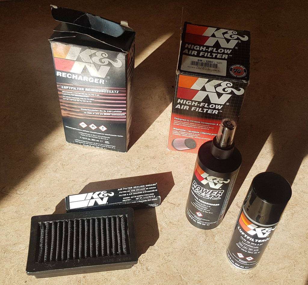 1. K&N Dauerluftfilter BM1204 incl. Dichtfett und Reinigungssatz / es ist jeweils noch genug Schmier- , Dicht- und Reinigungsmittel in den Behältern vorhanden