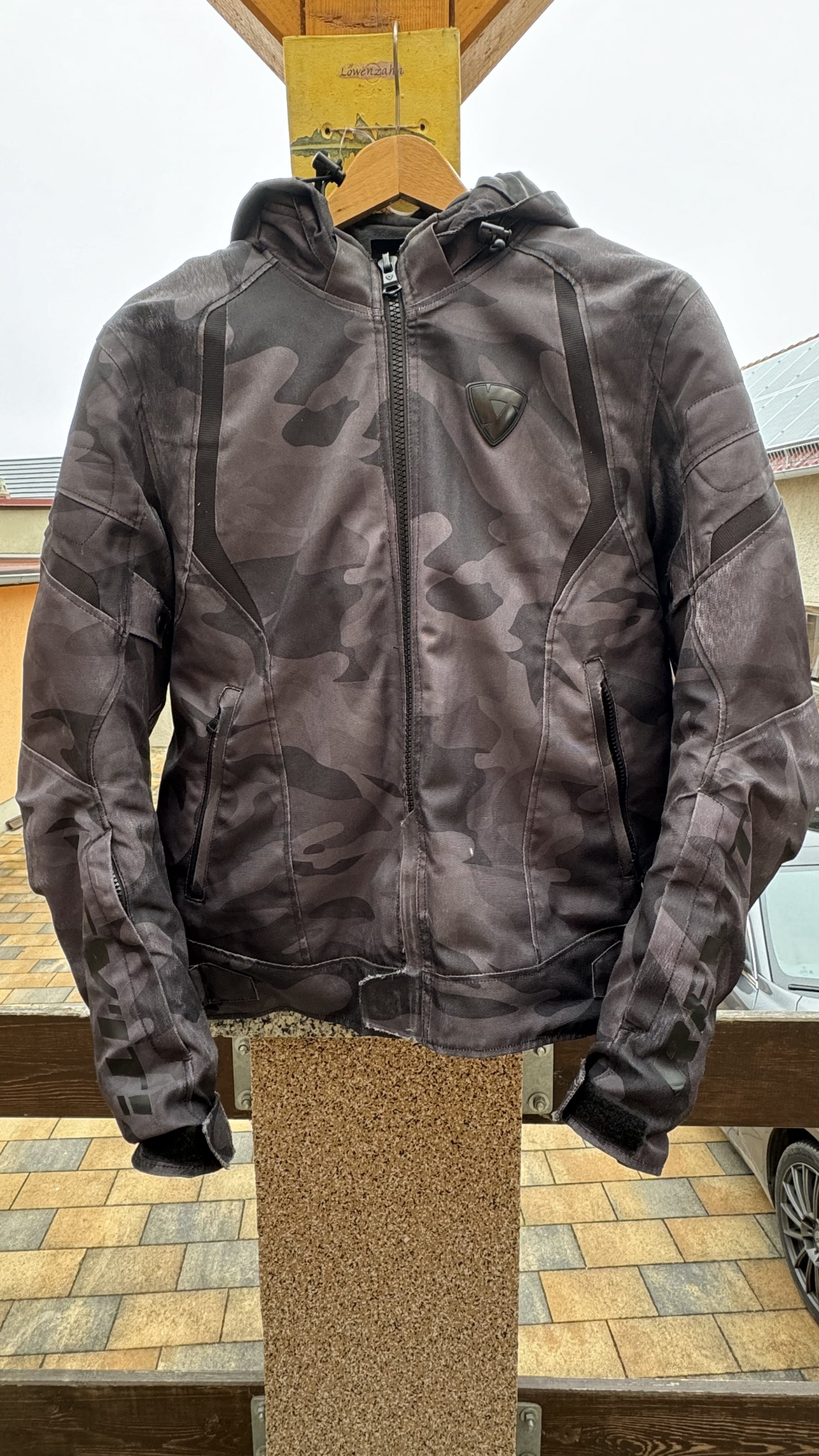 Verkaufe eine gebrauchte Textiljacke "Flare" von REVIT . Größe XL, passt in der Region 184 cm Größe und 90 kg wie angegossen. Schwarz/graues Camo Design.