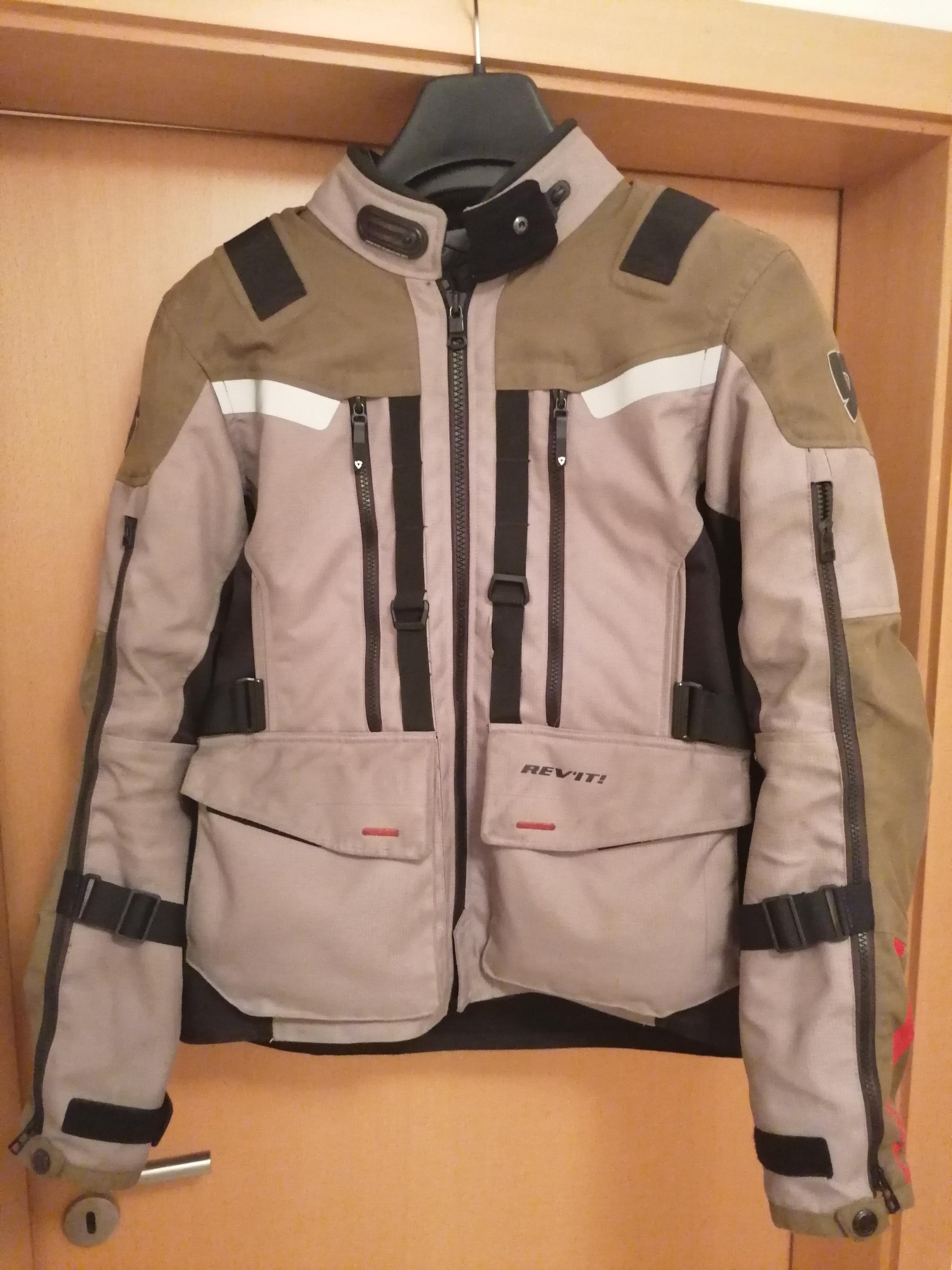 Die Jacke verfügt über original Revit Seefelx Level 2 Ellenbogen-,Schulter und Rückenprotektoren. Des Weiteren gehört eine wasserdichte, atmungsaktive und herausnehmbare Hydratex Membran sowie ein herausnehmbares Thermofutter dazu. Die Jacke hat zahlreiche Features wie zum Beispiel Halterungen für die Aufnahme einer Kühlweste oder Nackenstütze. Sie weist keine Beschädigungen wie zum Beispiel Risse oder ähnliches auf.