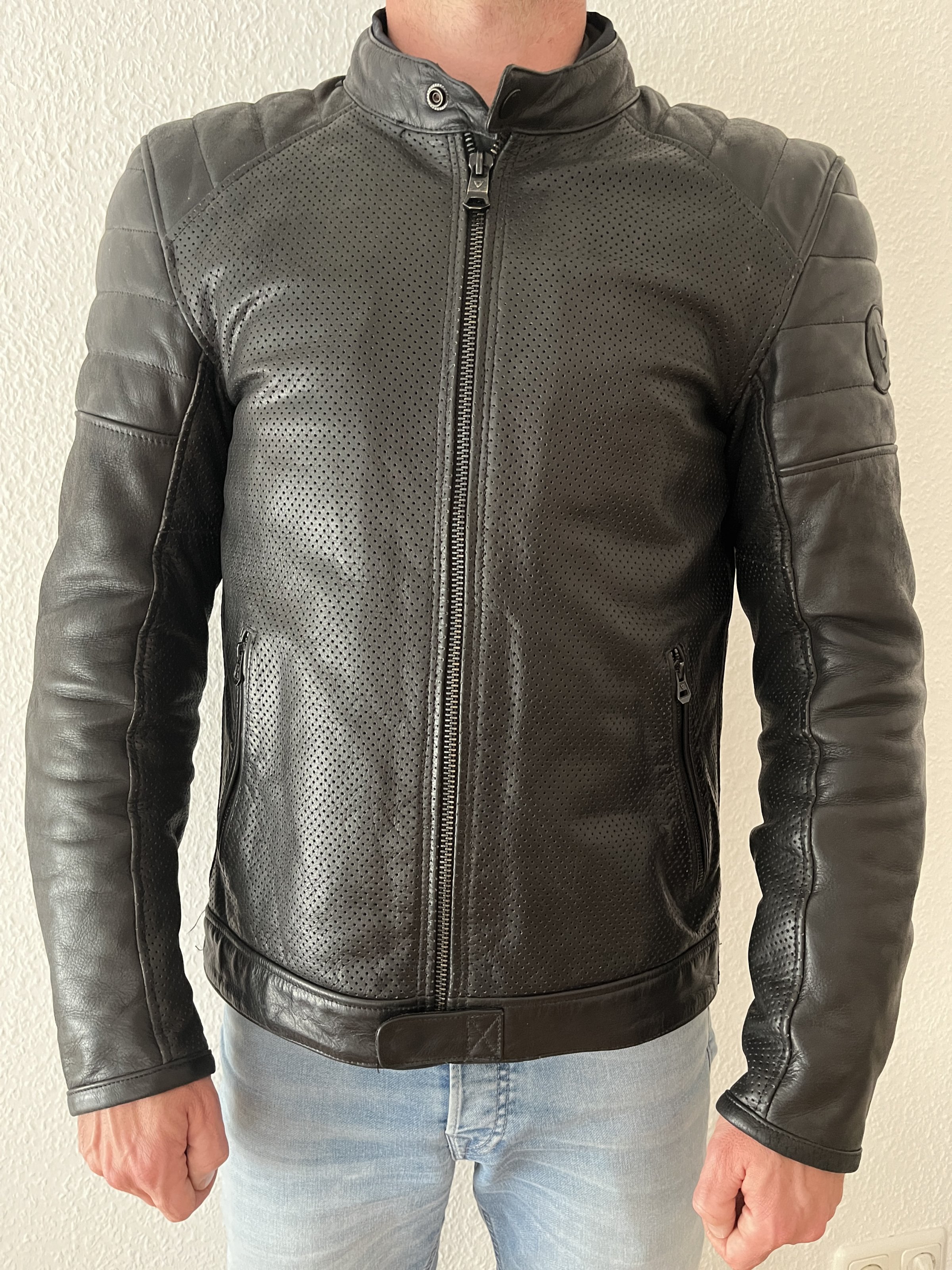 Diese Revit Lederjacke besitzt einen tollen Vintagelook mit den gesteppten Schultern. Sie wurde nicht im Regen getragen und sieht daher sehr gepflegt aus. Sie besitzt keine Mängel, das Leder ist nicht ausgeblichen. Es ist eine wunderschöne Vintage Motorradlederjacke, die auf Motorrad oder Roller getragen werden kann.