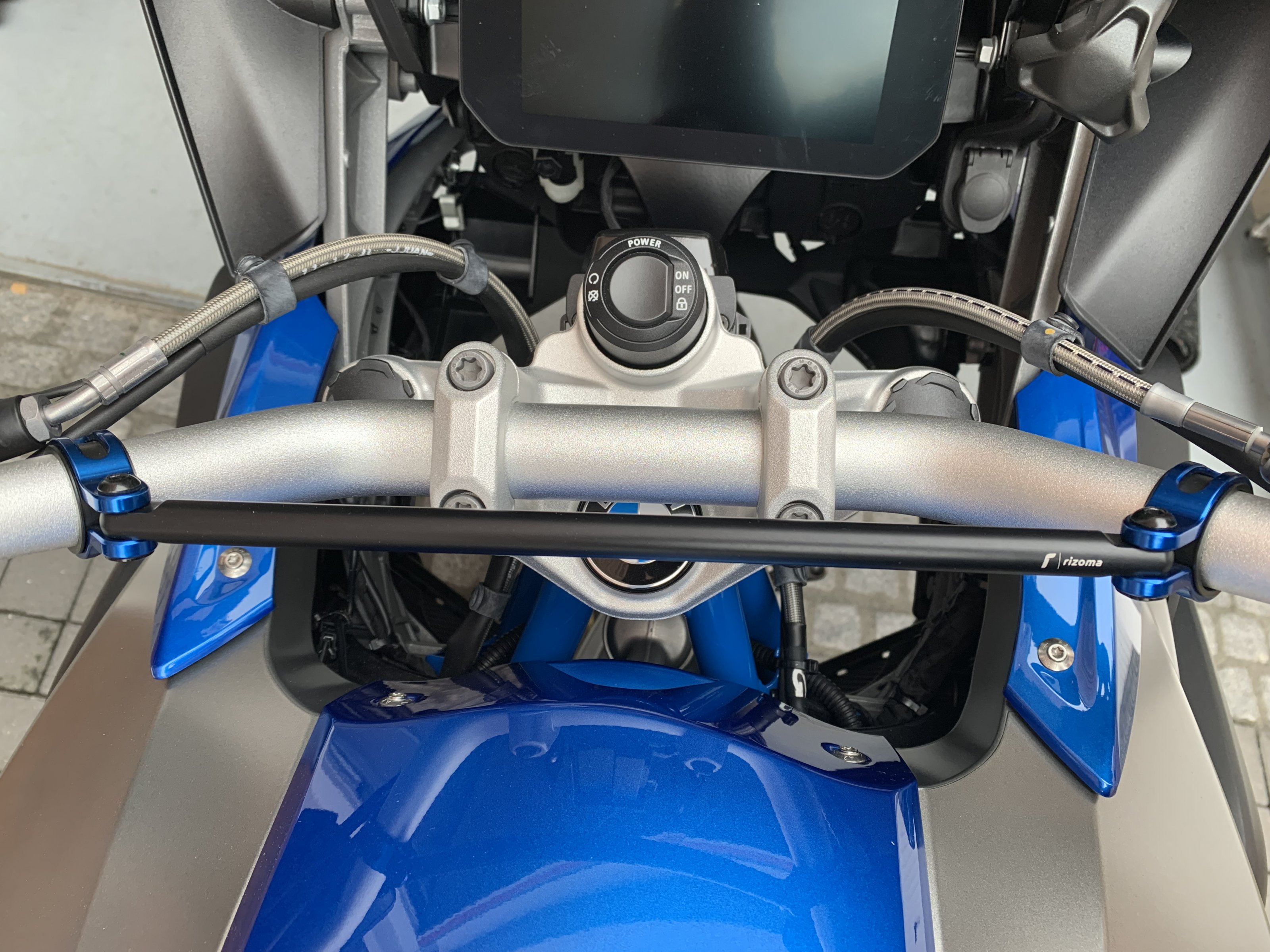 wegen Verkaufs meiner R1200GS Rallye wird auch das sonstige Zubehör extra verkauft. Angeboten wird hier die Lenkerstrebe von RIZOMA, farblich passend zur Rallye in den PEPSI Farben.
