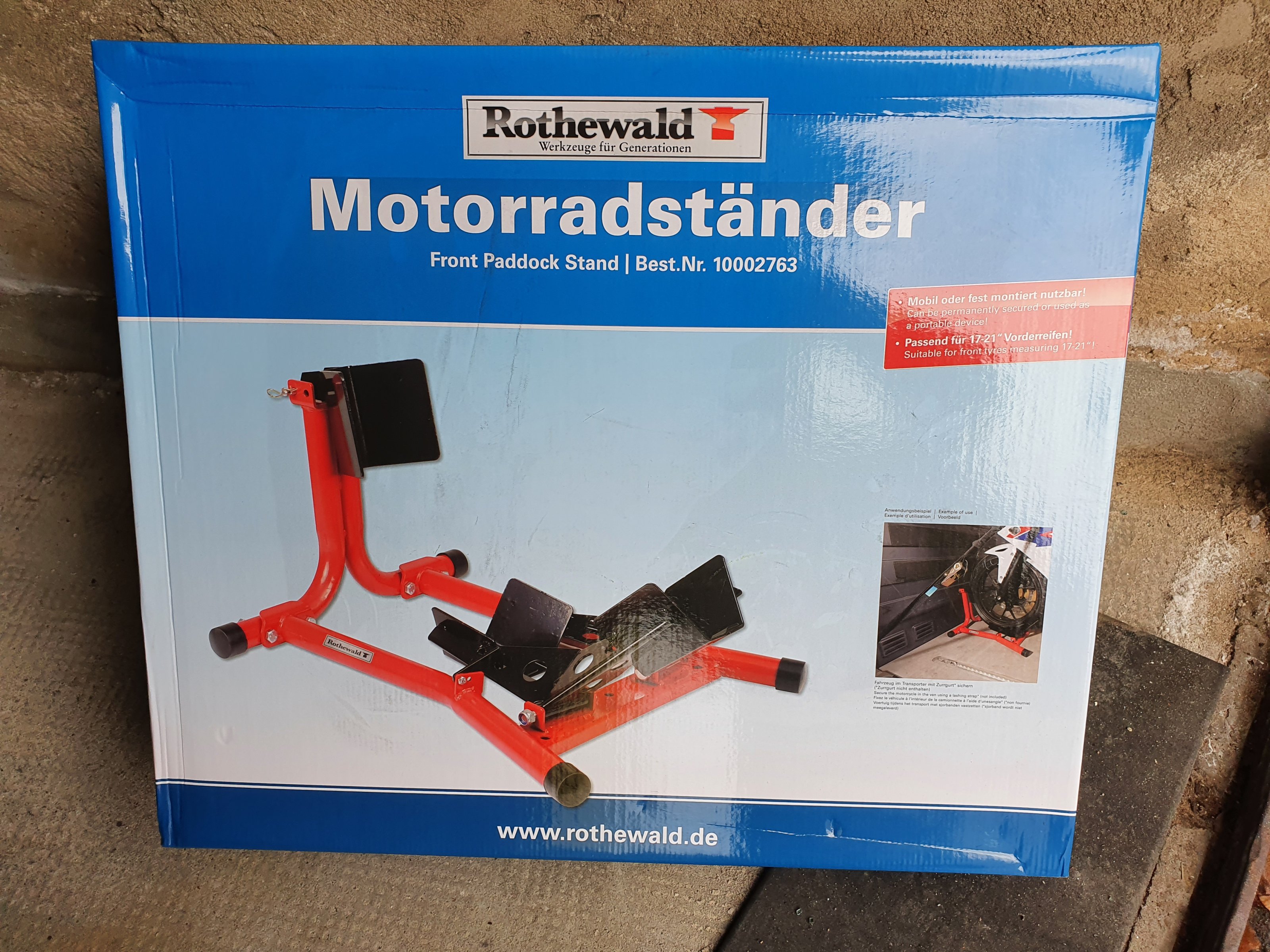 Diskutiere Rothewald Vorderrad- Motorradständer im Erledigte Biete-Anzeigen Forum im Bereich Biete (privat); Biete 2 neue Rothewald Vorderrad- Motorradständer zum Kauf an. Die Motorradständer sind original Verpackt, die Verpackung ist nicht geöffnet...