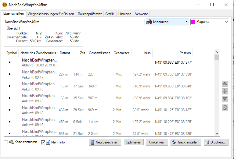612 Punkte auf 58km... also rd alle 95m einen Punkt gesetzt...
