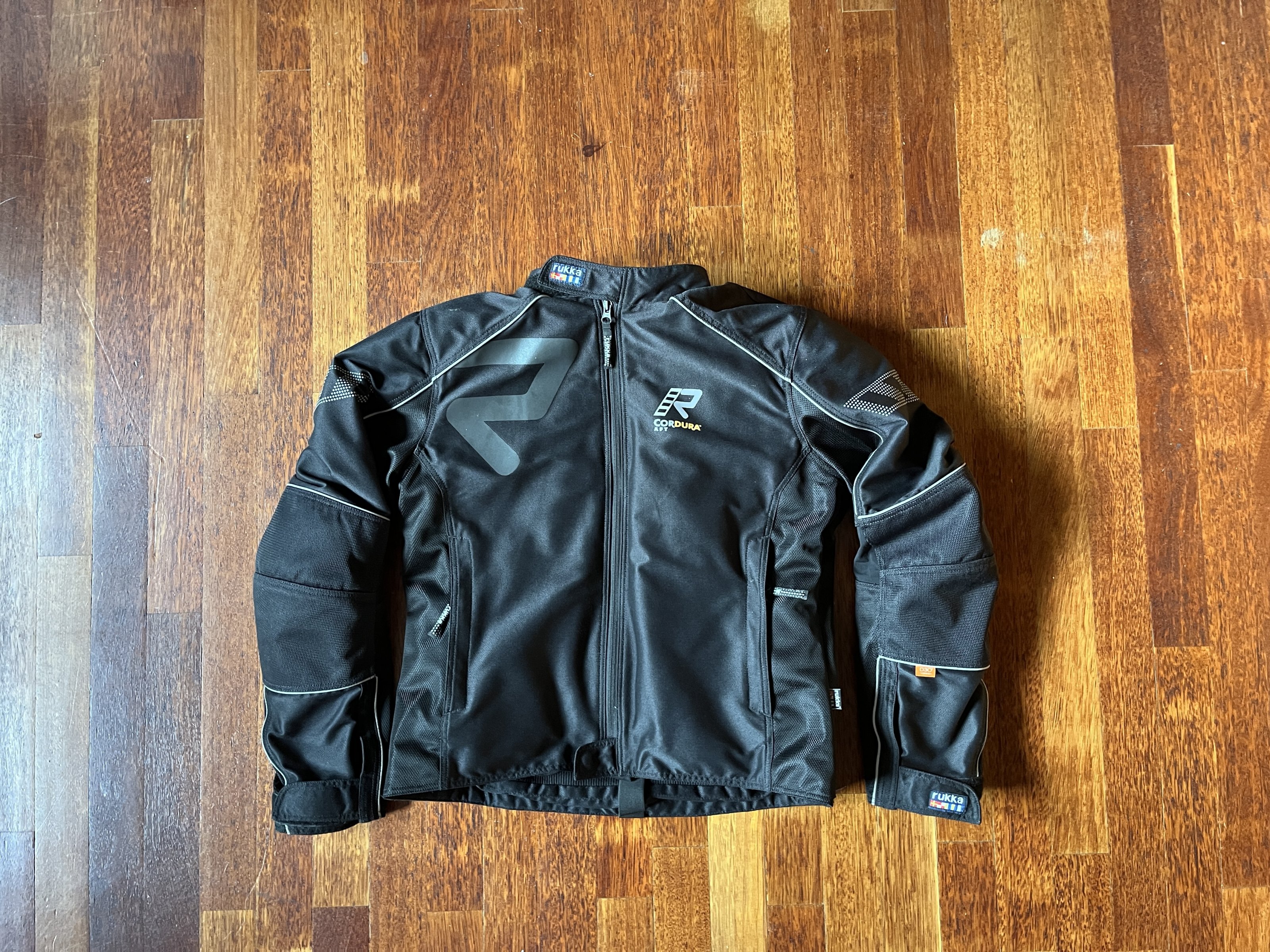 Da ich die Jacke (Größe 50) sehr wenig getragen habe, ist sie in einem ausgezeichneten Zustand. Ich verkaufe sie inkl. der original D3O-Gelenkprotektoren und eines D3O-Rückenprotektors. Für Temperaturen ab 25 Grad gibt es nichts Vergleichbares – da geht der Wind so durch! Leider ist sie mir inzwischen zu klein.