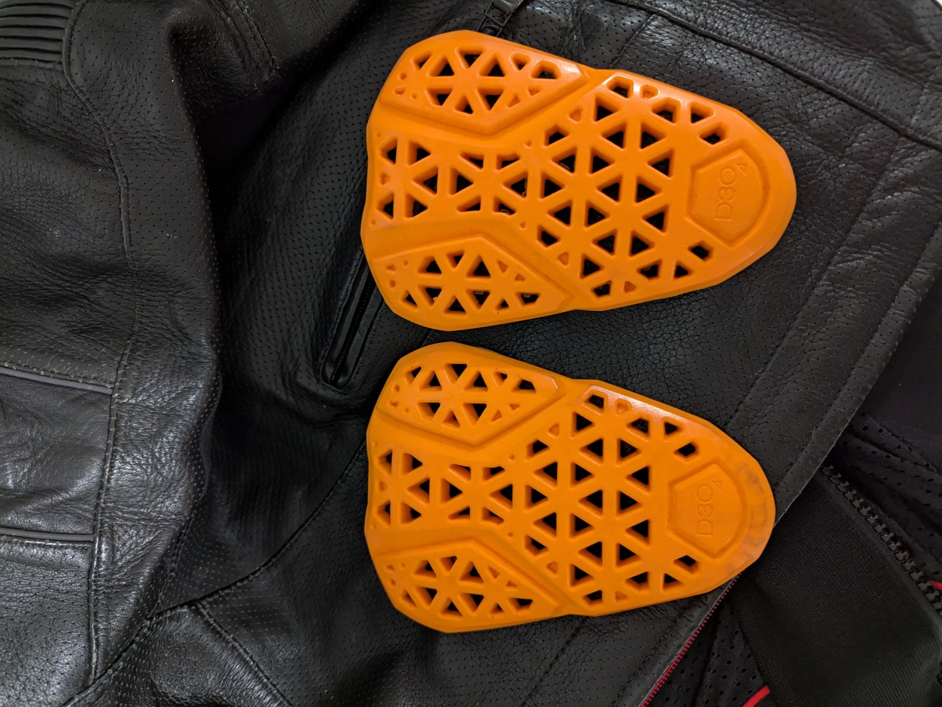 Die Lederkombi verfügt über die originalen Ellbogen -, Schulter-, Knie-, Rücken-, und Hüftprotektoren.