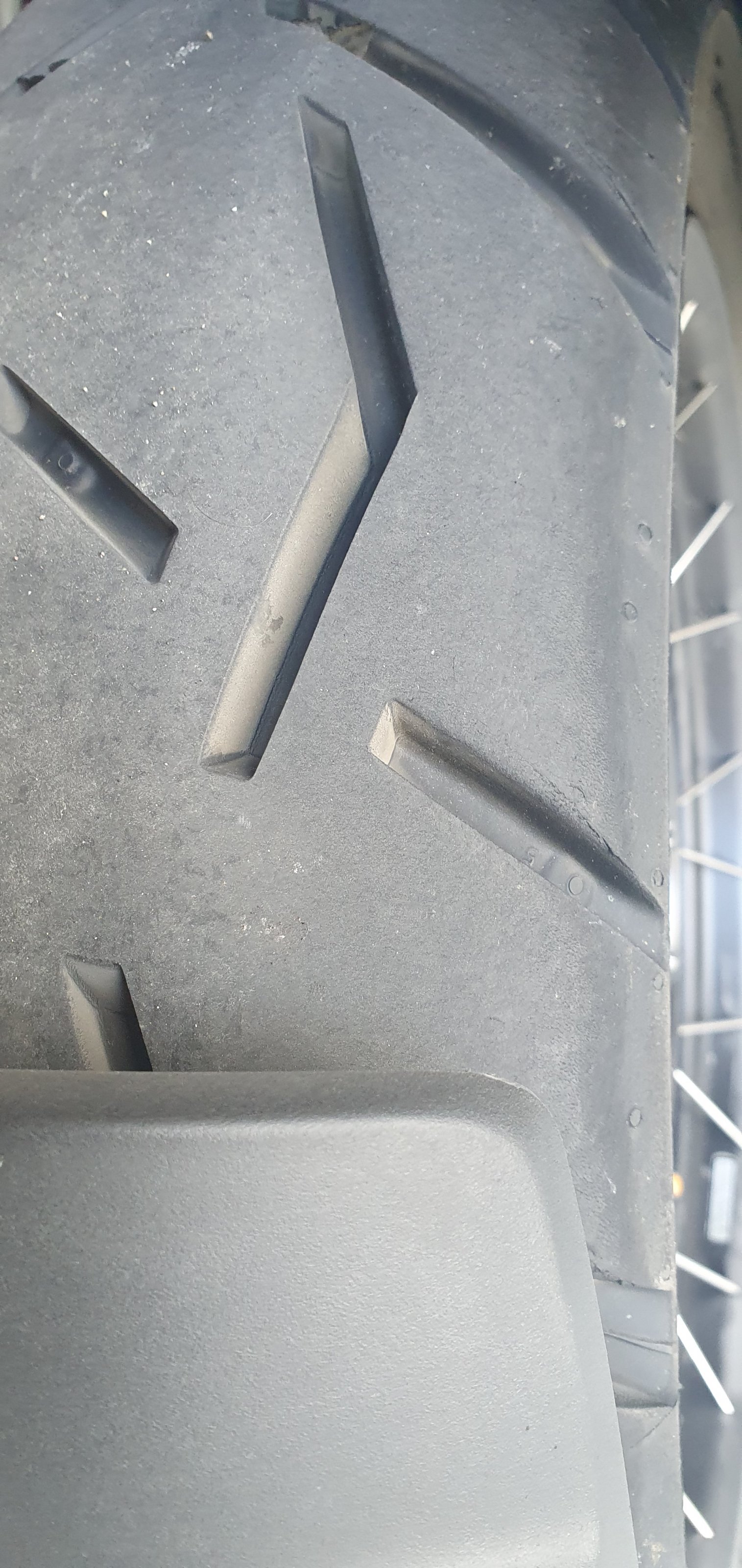 Letztens beim Reifenhändler (Reifen hinten im Bereich der Kante sehr schwach abgenutz, nach ca. 10mm wird es deutlich mehr, in der Mitte sehr viel stärker, leichte Anlassfarben der recht neuen Bremsscheiben…), sagt der: