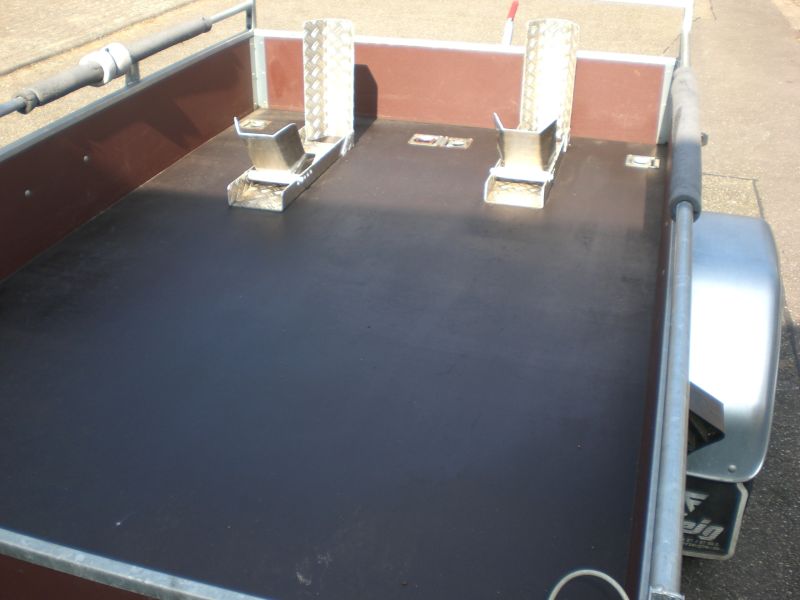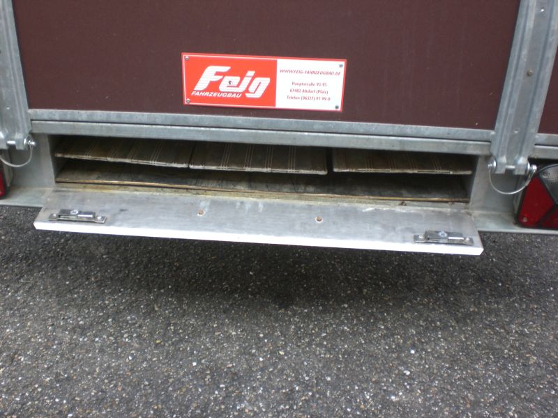 Spezialumbauten: Unter dem Anhänger befindet sich eine grosse geschlossene Ablagefläche für drei Aufllegerampen (siehe Fotos), die wenn man das Nummernschild herunter klappt zugänglich wird.