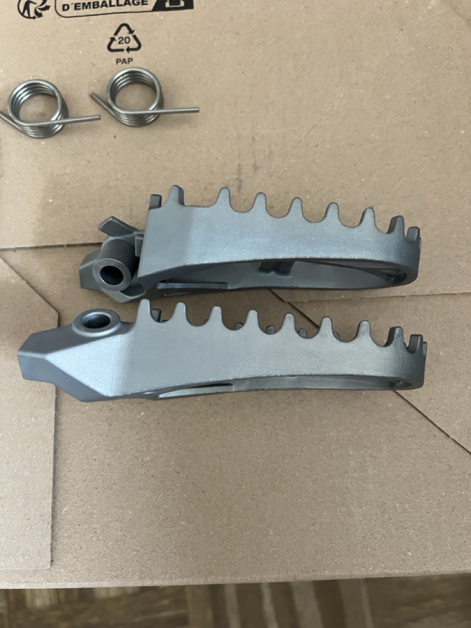 Biete einen kompletten Satz Fußrasten "Enduro" incl. der Drehfedern. Es ist originale BMW Ware und wurde vor der Auslieferung der Maschine beim Händler demontiert. Preisvorstellung € 100,-- +Versand per DHL.