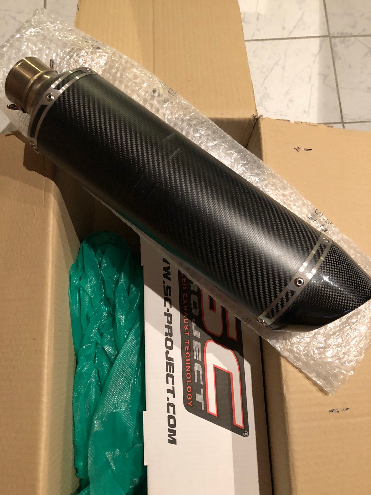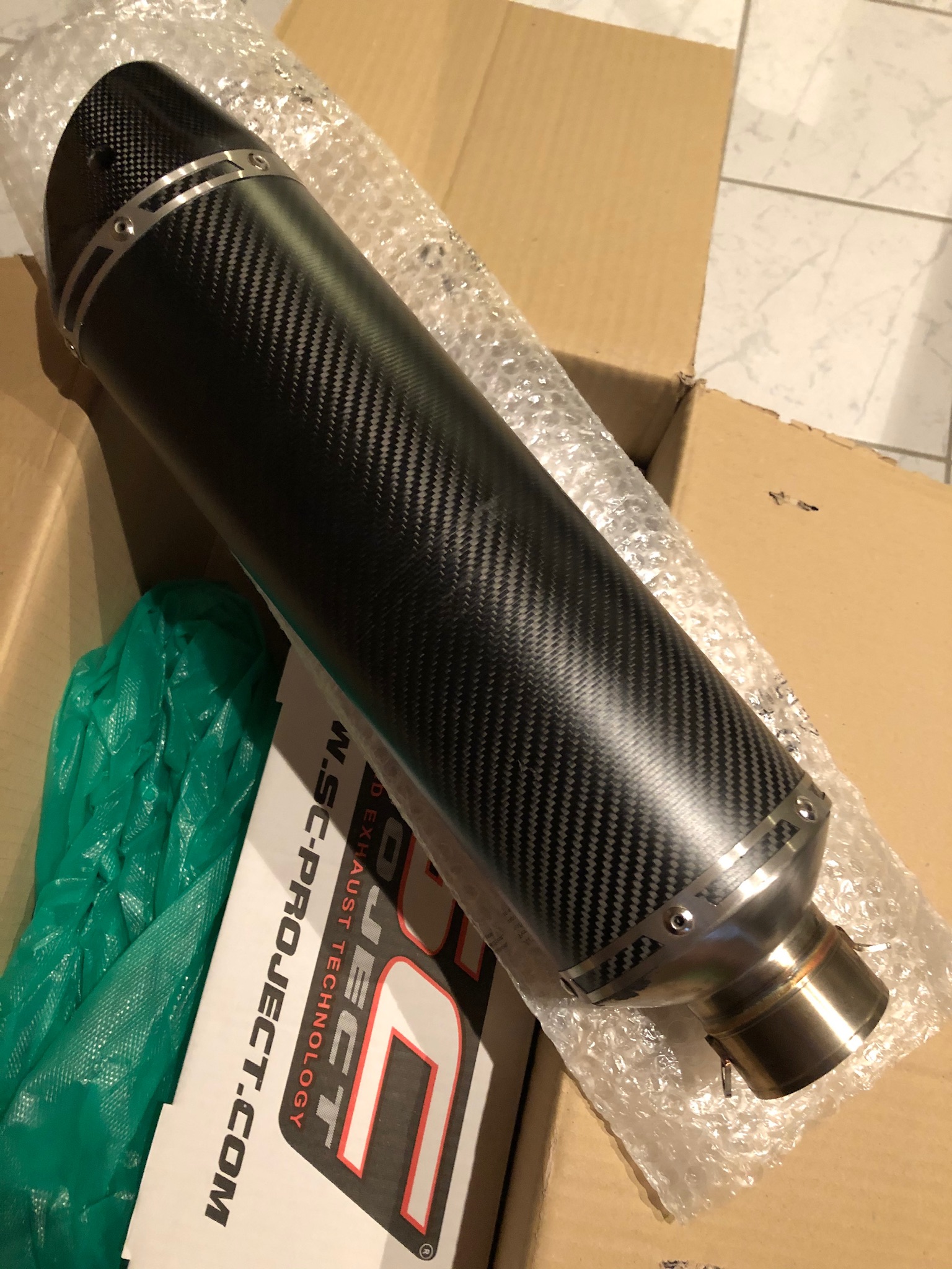 Verkaufe einen Carbon-Endtopf von SC-Project für die R1200GS K25, aber unvollständig.