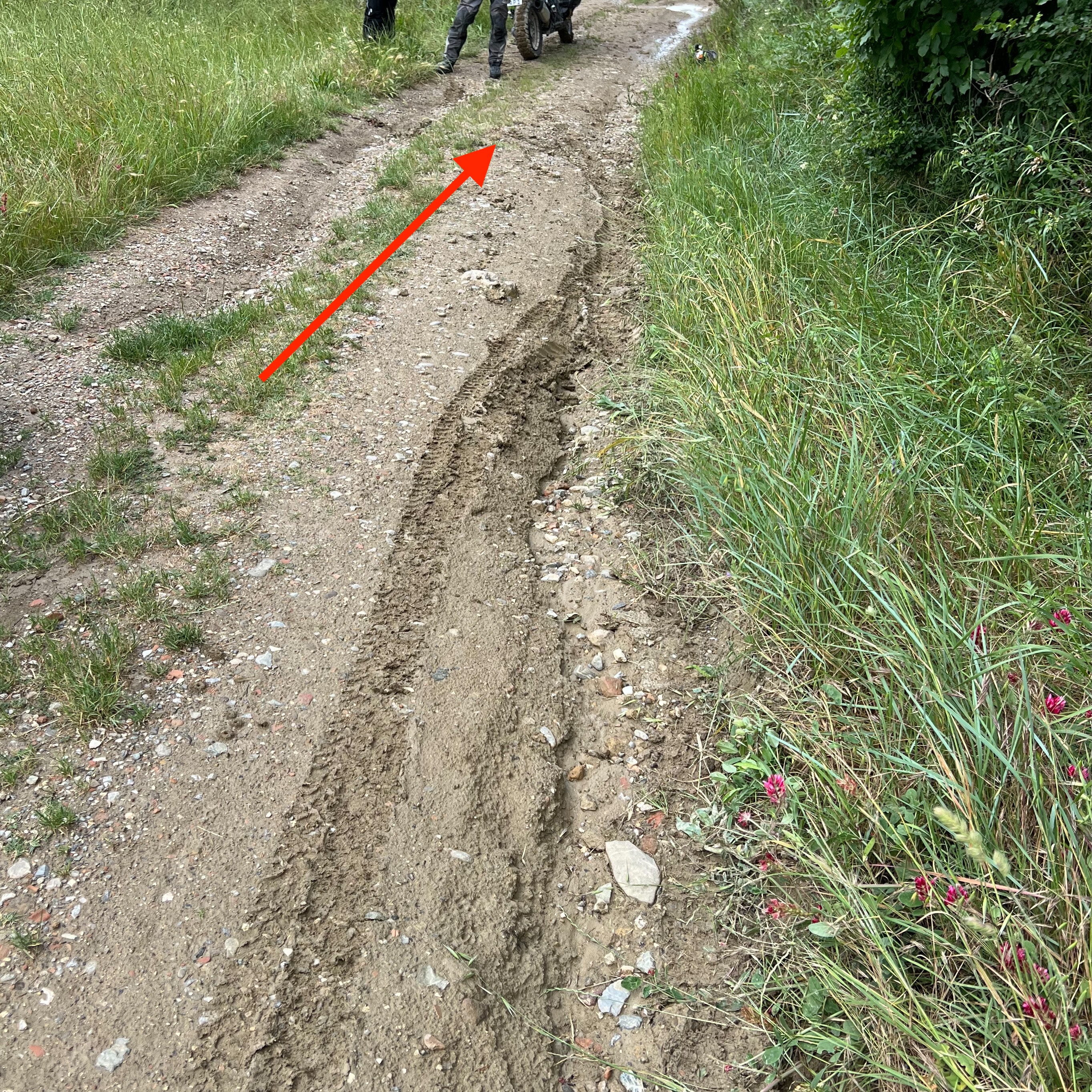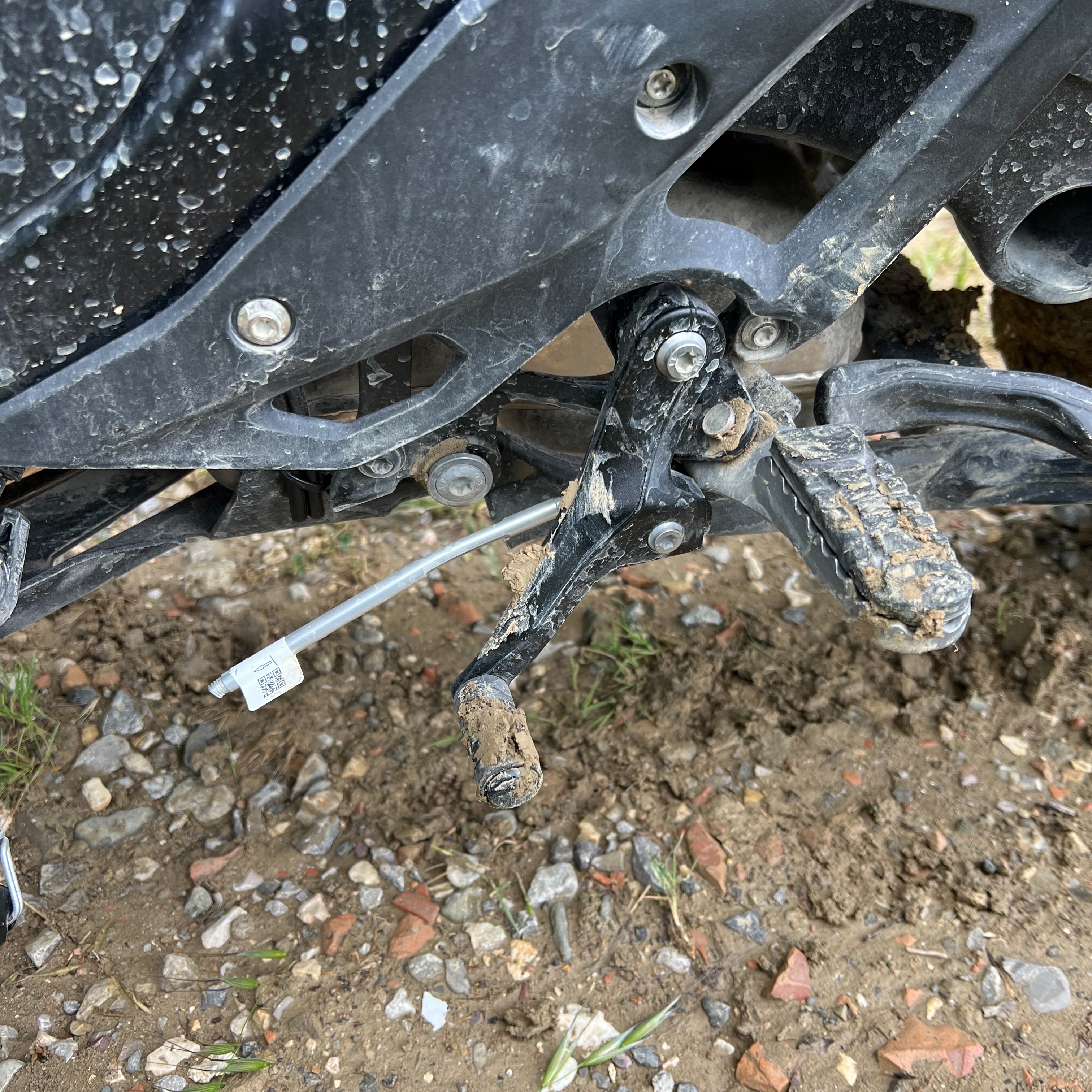 Ich war für ein paar Tage in der Toskana und bin hier auf einem kleinen Nebenweg im Schlamm weggerutscht. Der Schalthebel hat sich in der mittigen Grasnabe des Weges eingehakt und durch die Drehbewegung der GS beim Fallen wurde dieser wohl nach noch weiter unten gedrückt.