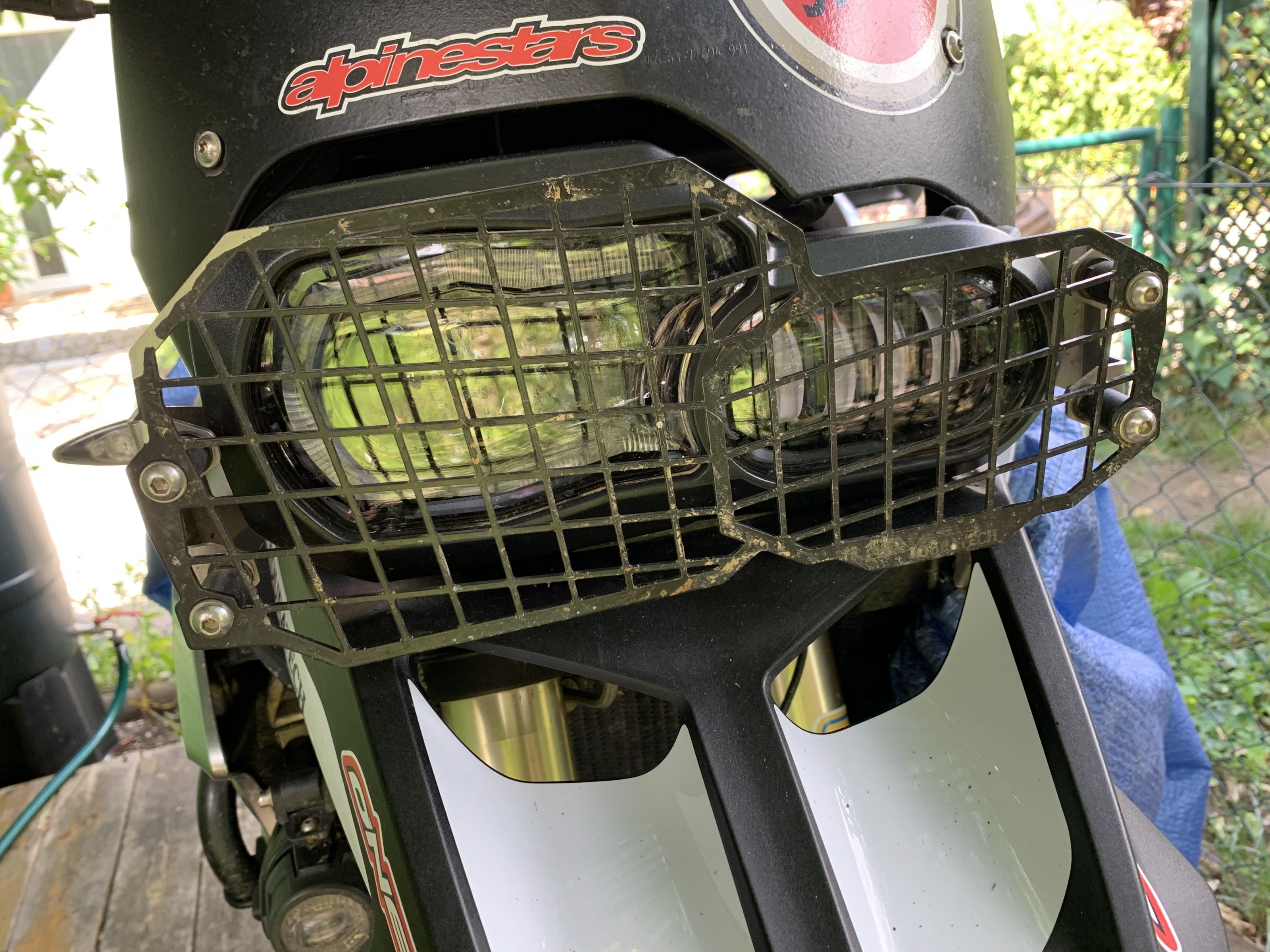 Er besteht aus Edelstahl. Das schöne an dem Scheinwerferschutz ist, das er sehr einfach und sehr schnell abgenommen und wieder angebaut werden kann.