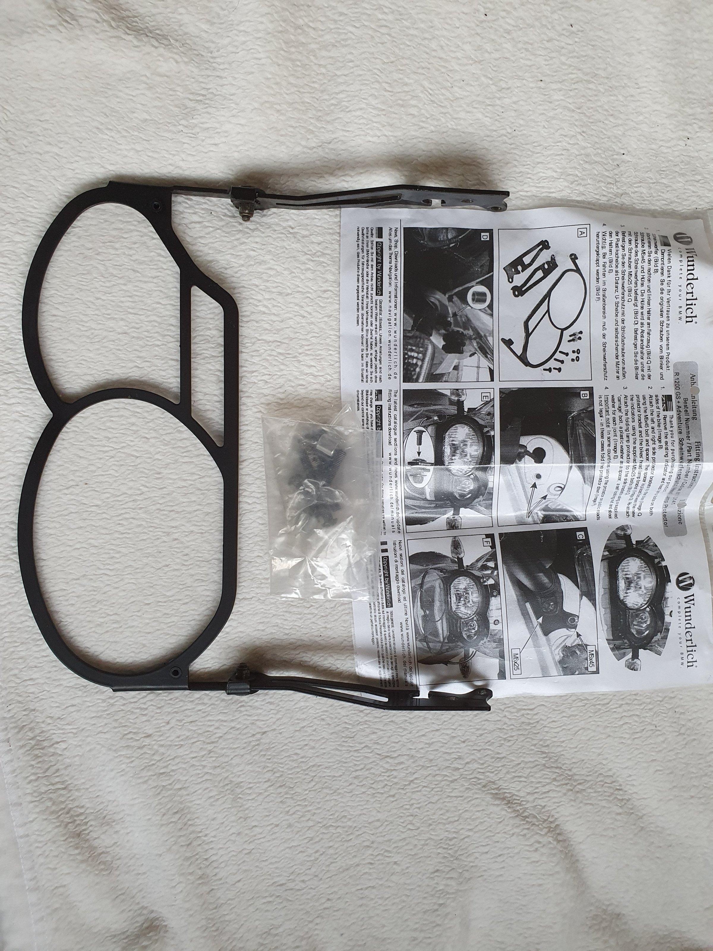 ich verkaufe einen wenig genutzten und gut erhaltenen Scheinwerferschutz der Fa. Wunderlich für die 1200er K25. Die Scheibe ist klappbar ausgeführt. Die Kunststoffscheibe hat keine groben Kratzer, aber Gebrauchsspuren. Montageanleitung und -material sind dabei (s. Foto).
