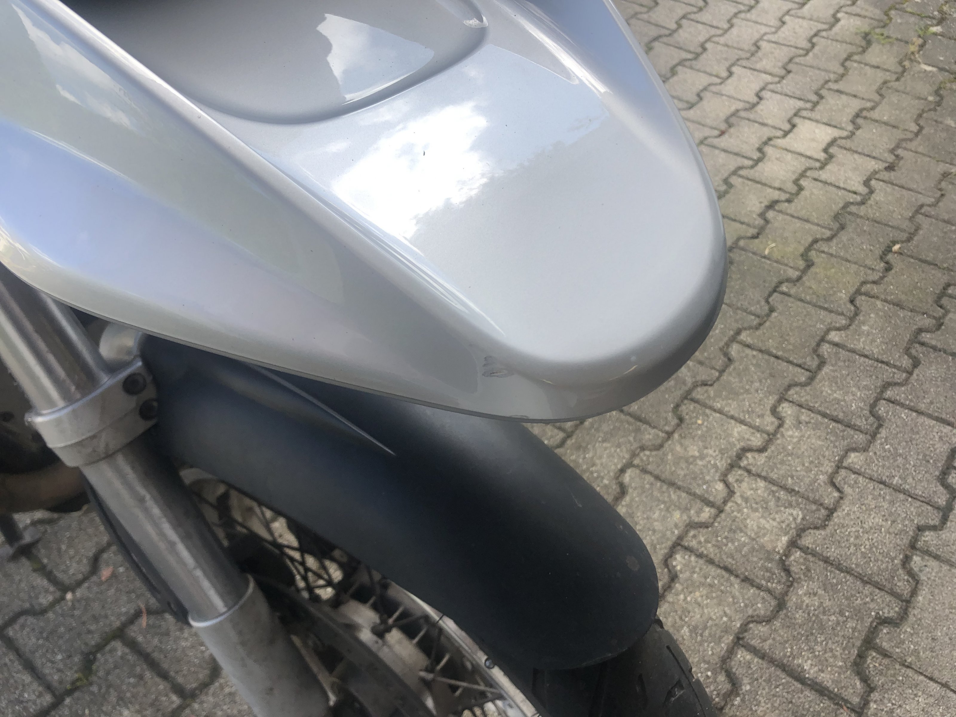Schnabel mit kleinen Steinschlägen oder Kratzerchen an der Vorderkante, Lack ansonsten sehr gut: 120€