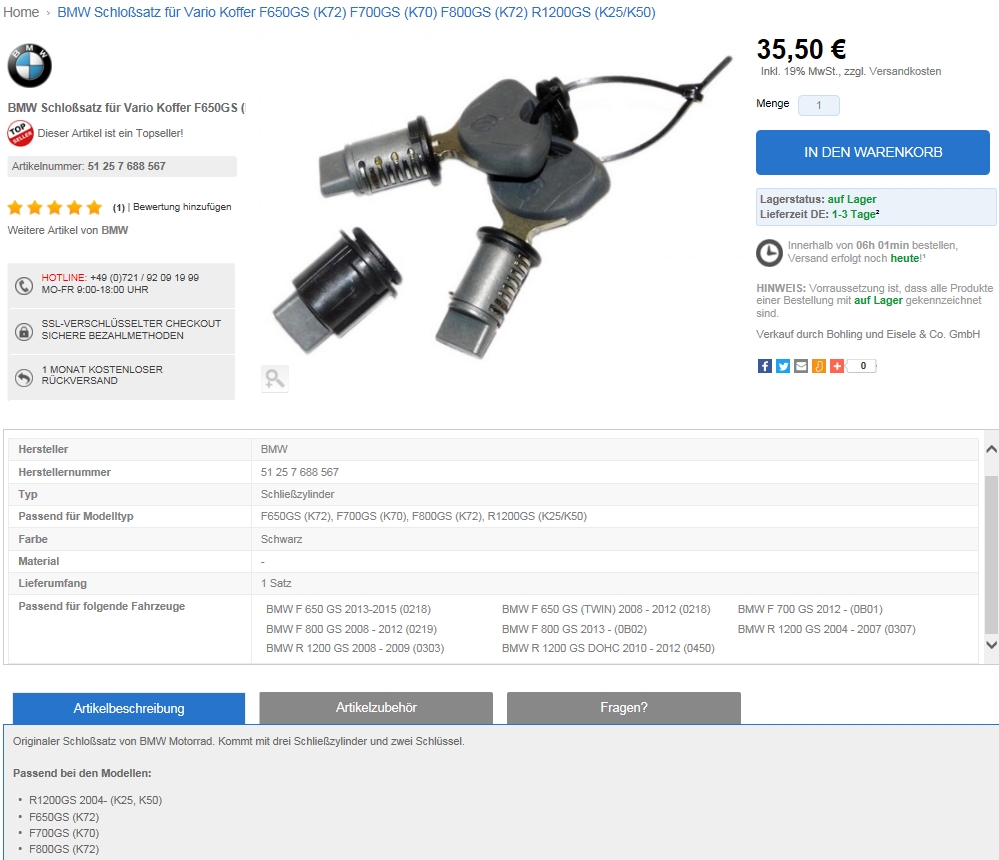 Wer weiß was neue Schösser inkl. Schlüssel für die Orginal Variokoffer kosten und ob man diese nur bei BMW bekommt.