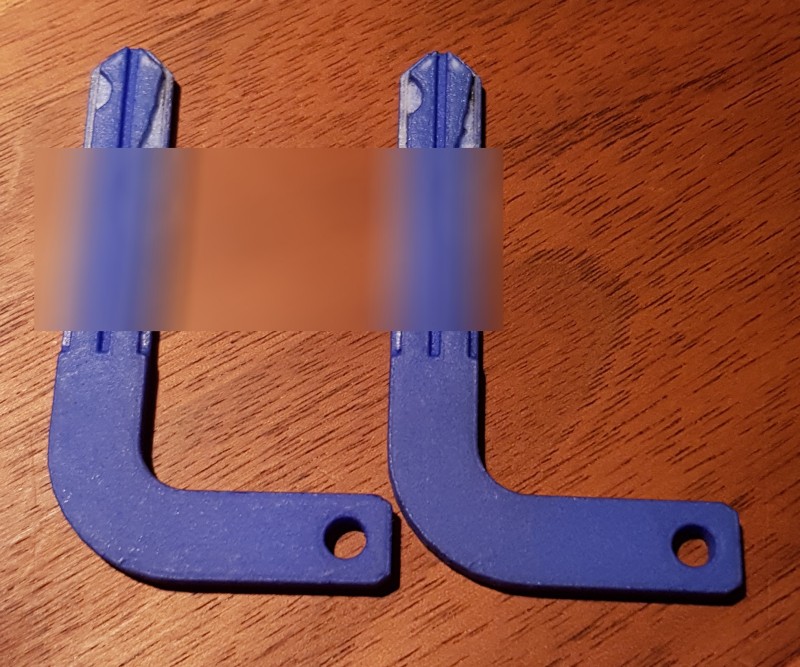 Kleine Einschränkung: Der Mittelteil sollte 1 mm dick sein und kam mit 1,1 - 1,15 mm. So tolerant sind die Schlösser nicht, da musste ich etwas wegkratzen. Aber die Bartform hat beim ersten Schuss gepasst, sowohl bei den Koffern als auch zum Entriegeln des Lenkerschlosses.