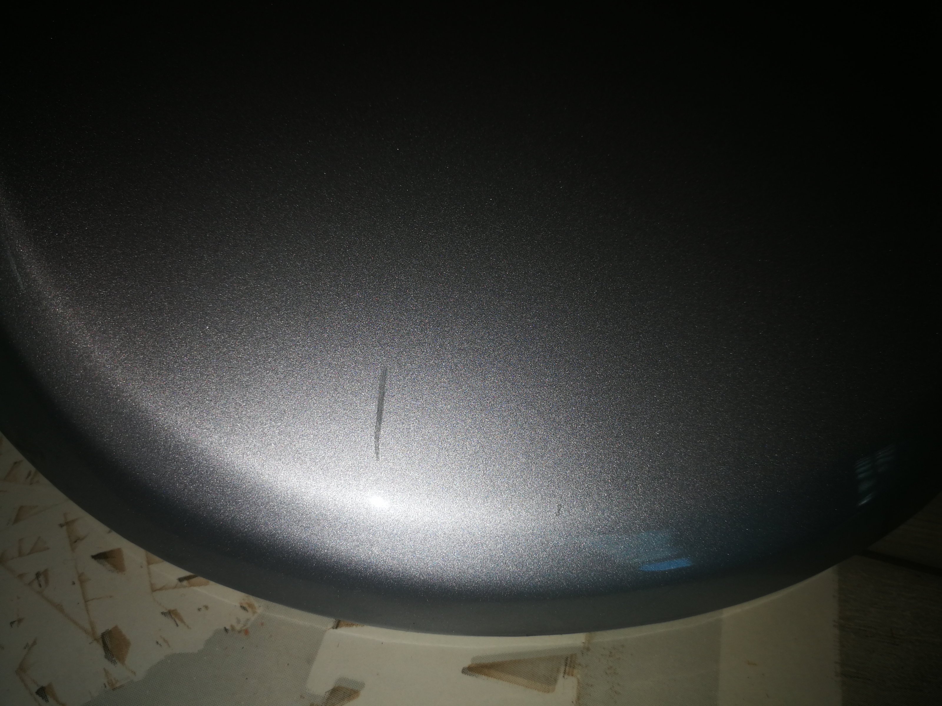Vorne hat er einen Kratzer der bei genauerer Betrachtung sichtbar.