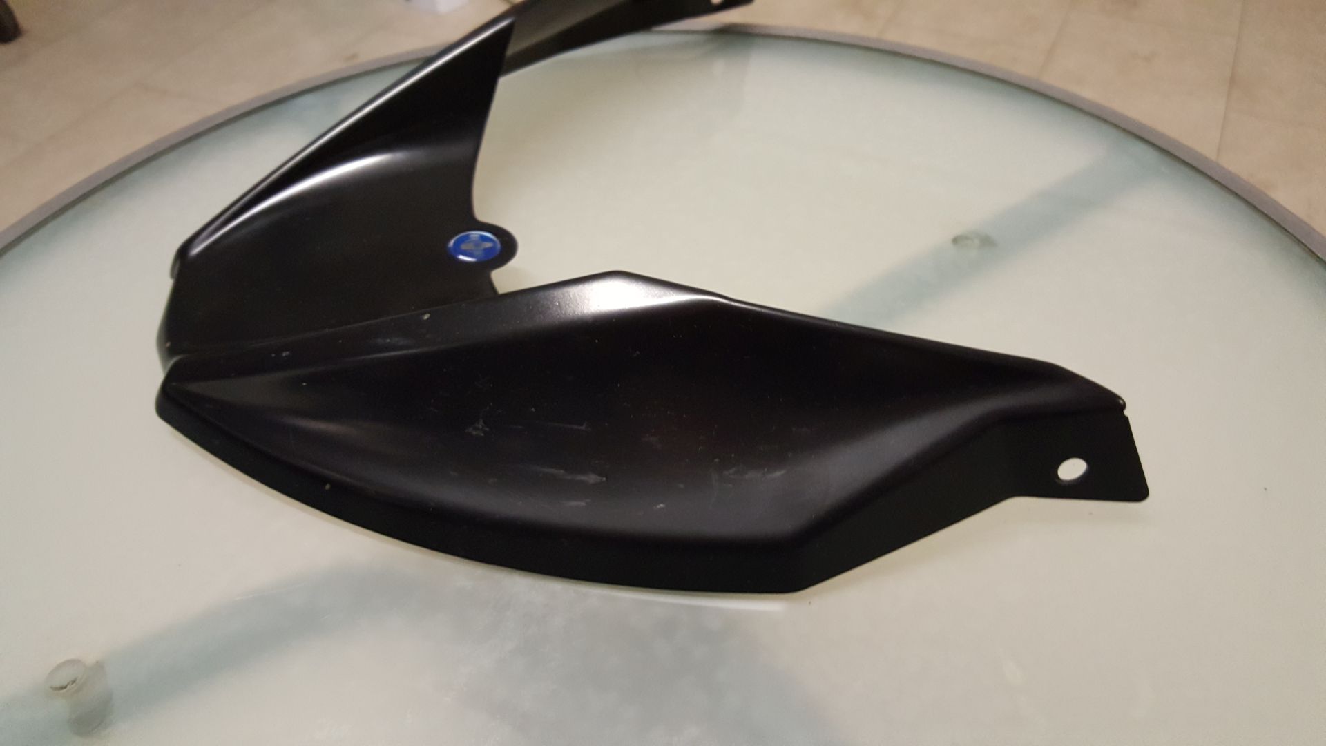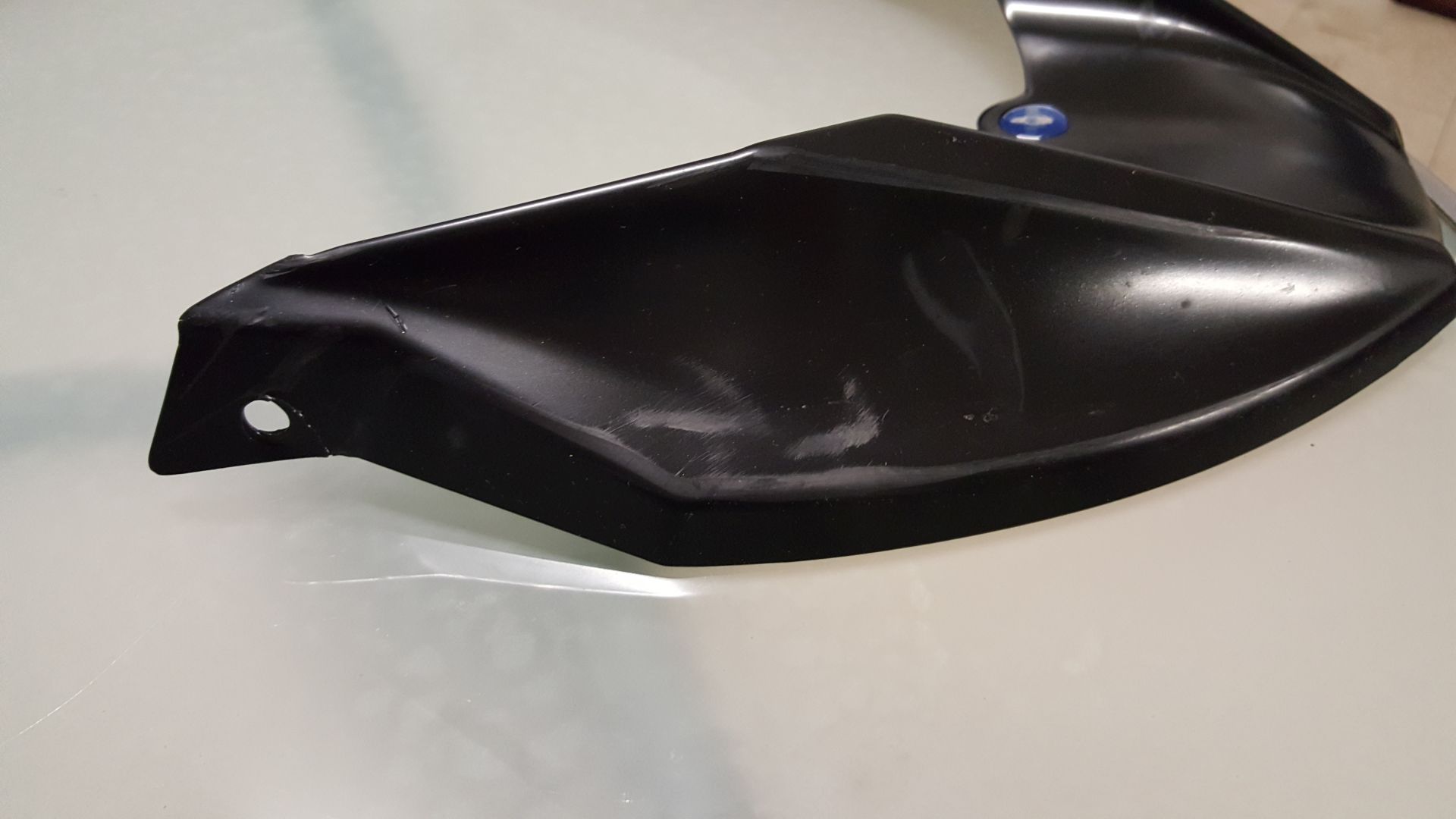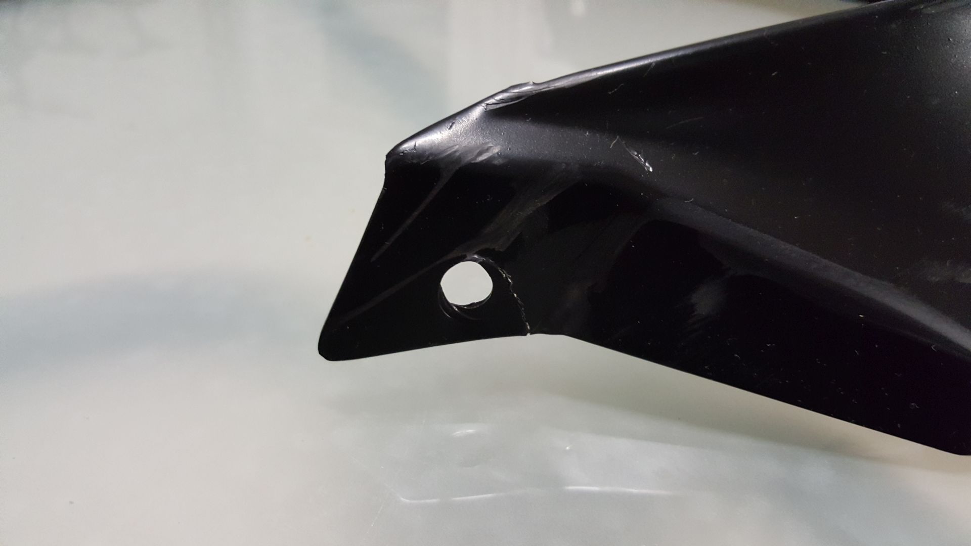 Leider hat Sie durch einen Umfaller Kratzer und einen Riss an einem der Befestigungslöcher (siehe Fotos)