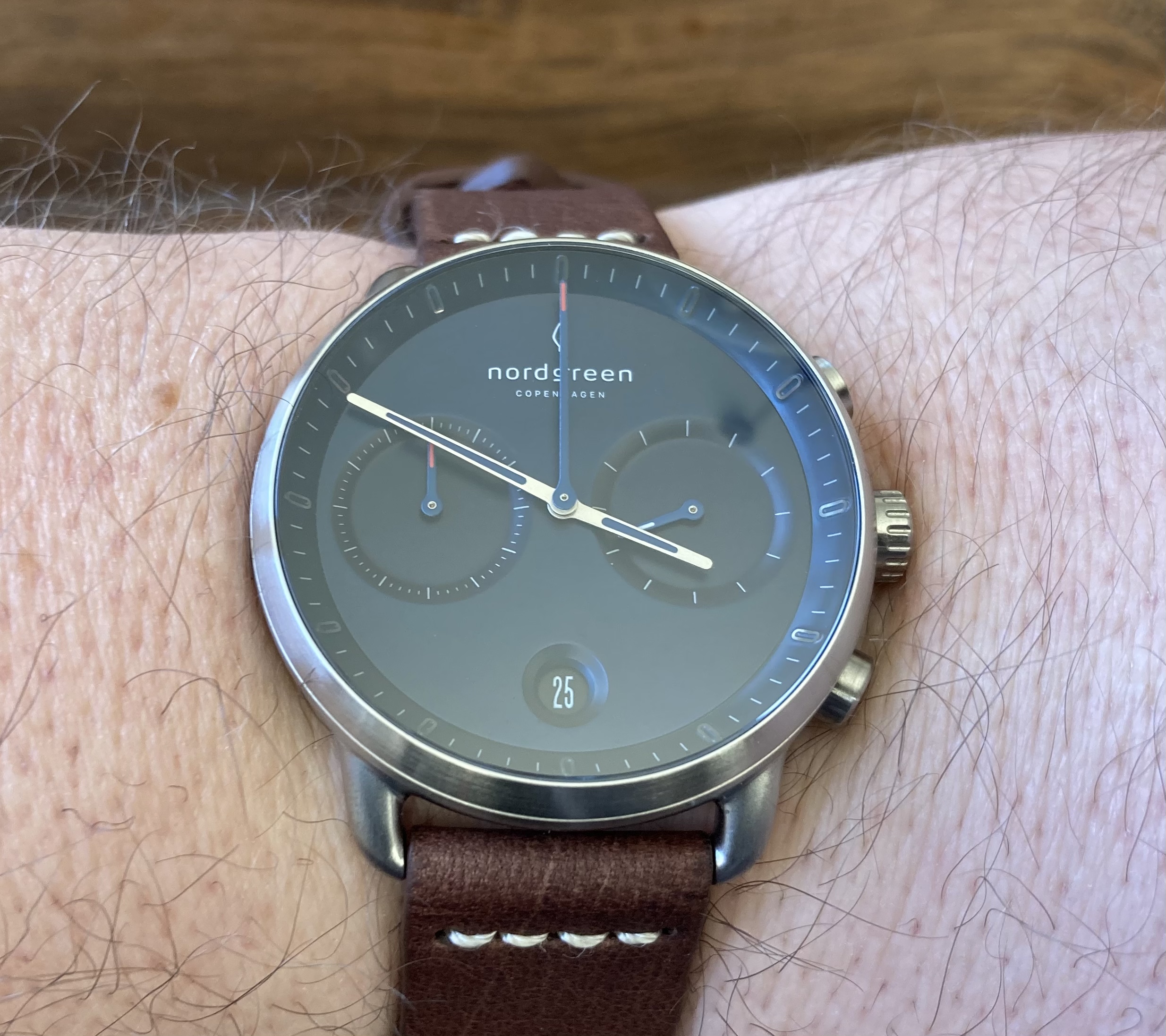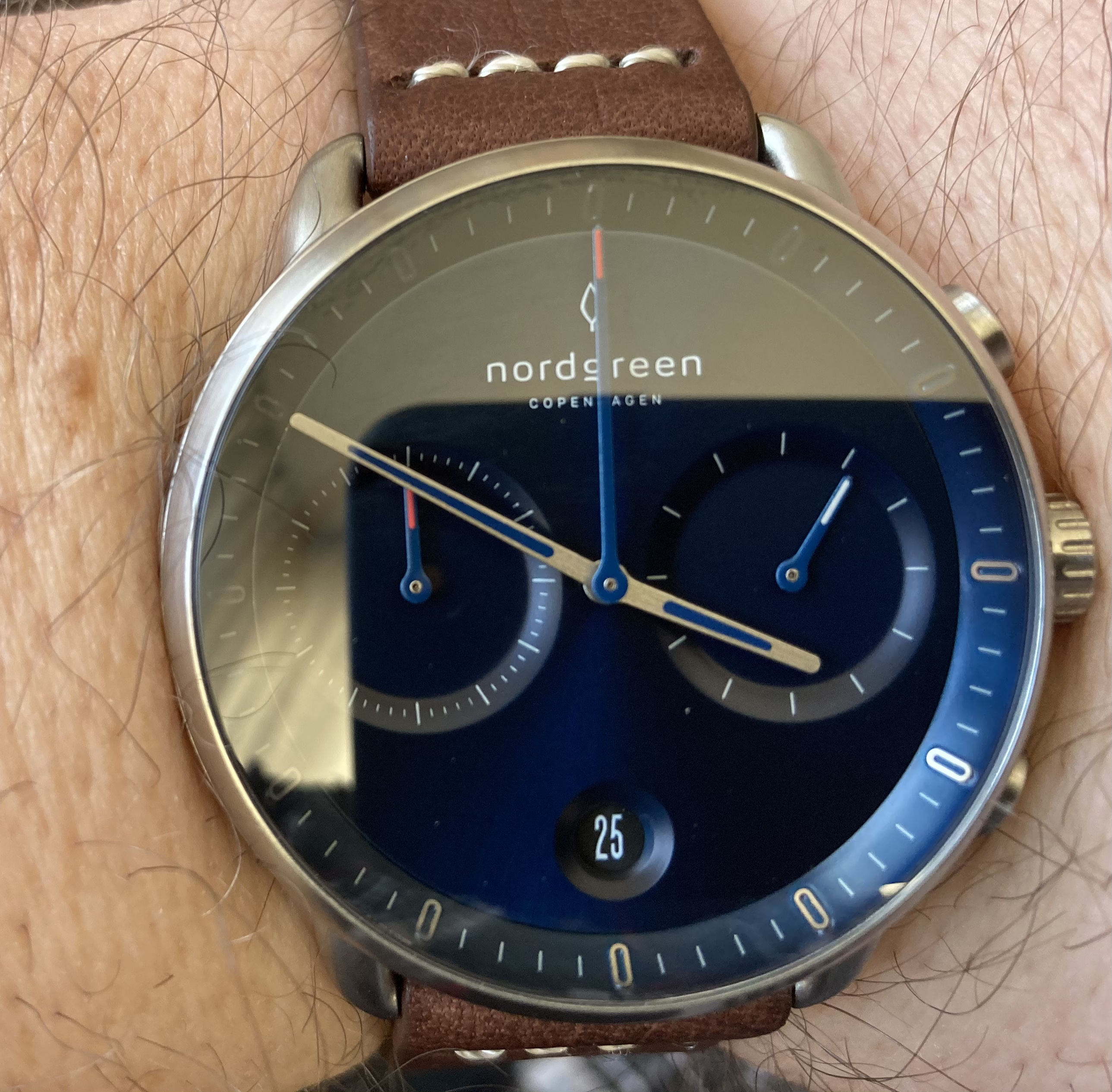 Auch wenn ich mit der nachfolgend gezeigten Uhr zwar des Threadtitels gerecht werde (meine persönliche Meinung), schramme ich doch an "Tieschers" Eröffnungstext vorbei. Die Uhr ist nicht mechanisch, sie trägt keinen der alten deutschen Namen, schon gar keinen der Nobelmarken (die wohl allein die hehre Uhrmacherkunst darstellen, während alles andere Plagiat ist … da fallen mir ad hoc div. Uhren namhafter Hersteller ein, die sich äußerst ähnlich sind, aber, da sie nicht aus Japan o. gar China kommen, wäre es sicher Blasphemie zu behaupten, der eine hätte vom anderen abgeschaut. Da hilft dann nur noch der größere Name, o. a. Preis zur Be~/Verurteilung, fürchte ich