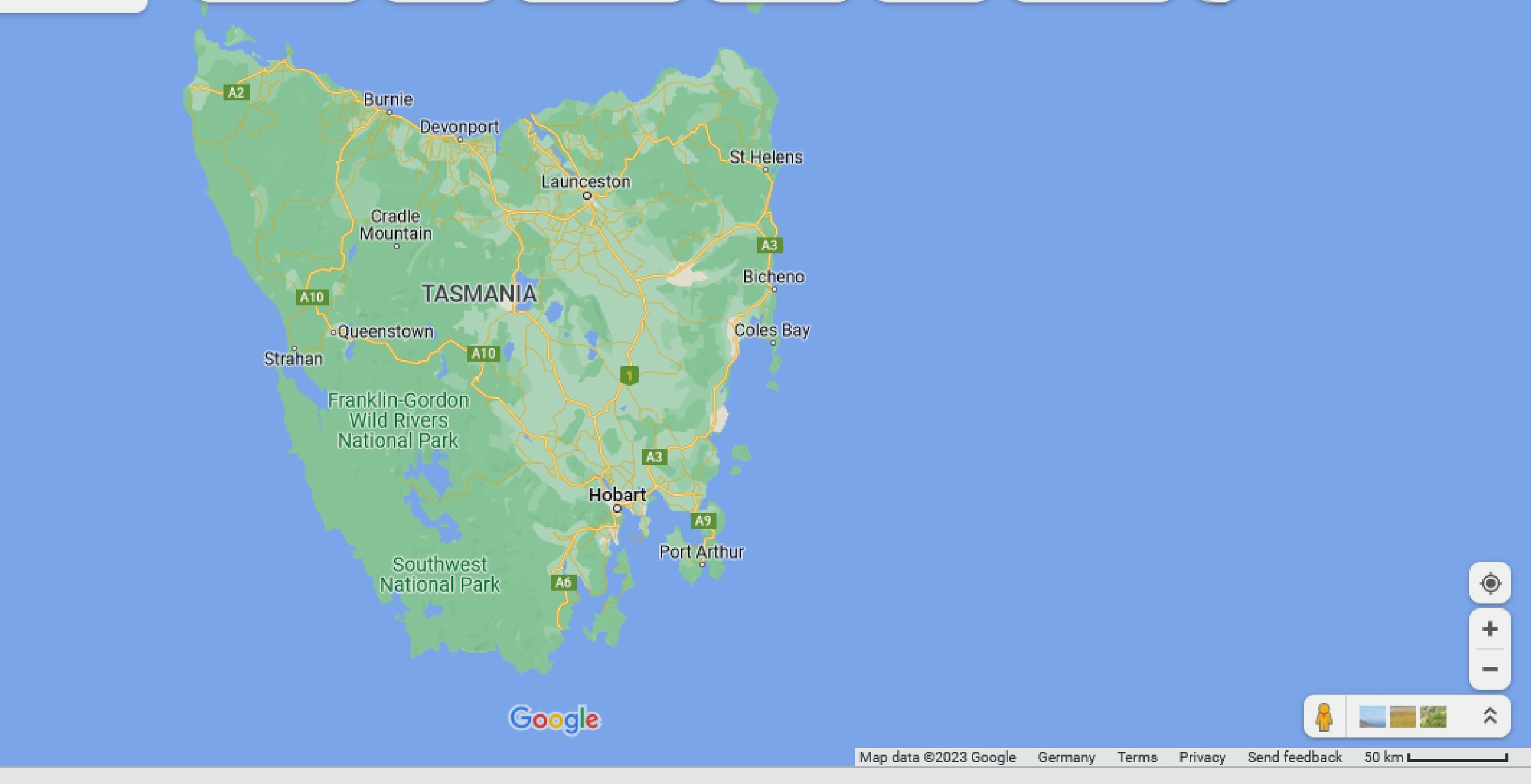 ich glaub ich muss mal die Verwandschaft in Down Under besuchen. Ob das Moped als Handgepäck durchgeht ????Tasmanien/ linke Haelfte