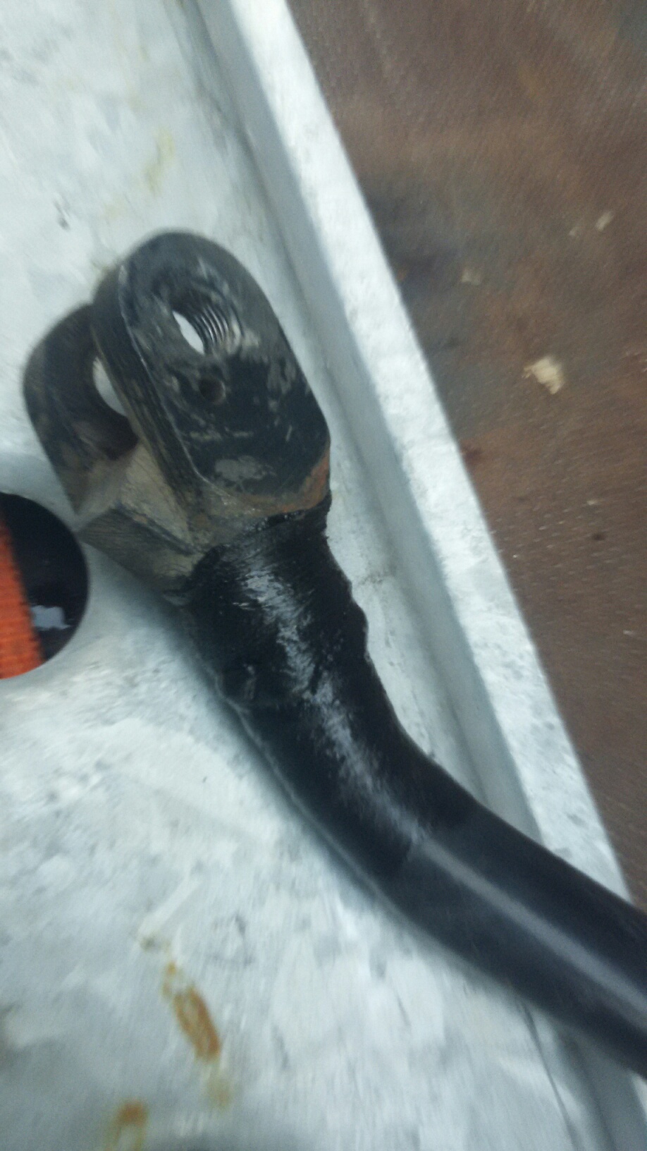 Bild war VOR dem Zusammenbau! Fehlen ja Halterung, Federn und alles! Nur um die Bruchstelle zu zeigen und wo sie sich relativ zur Maschine befindet.Kann es sein, dass er die Stütze falsch zusammengeschweisst hat, also etwas zu sehr nach hinten? Oder täuscht das Bild? (Die Schweissnaht gewinnt keine Schönheitswettbewerbe....)